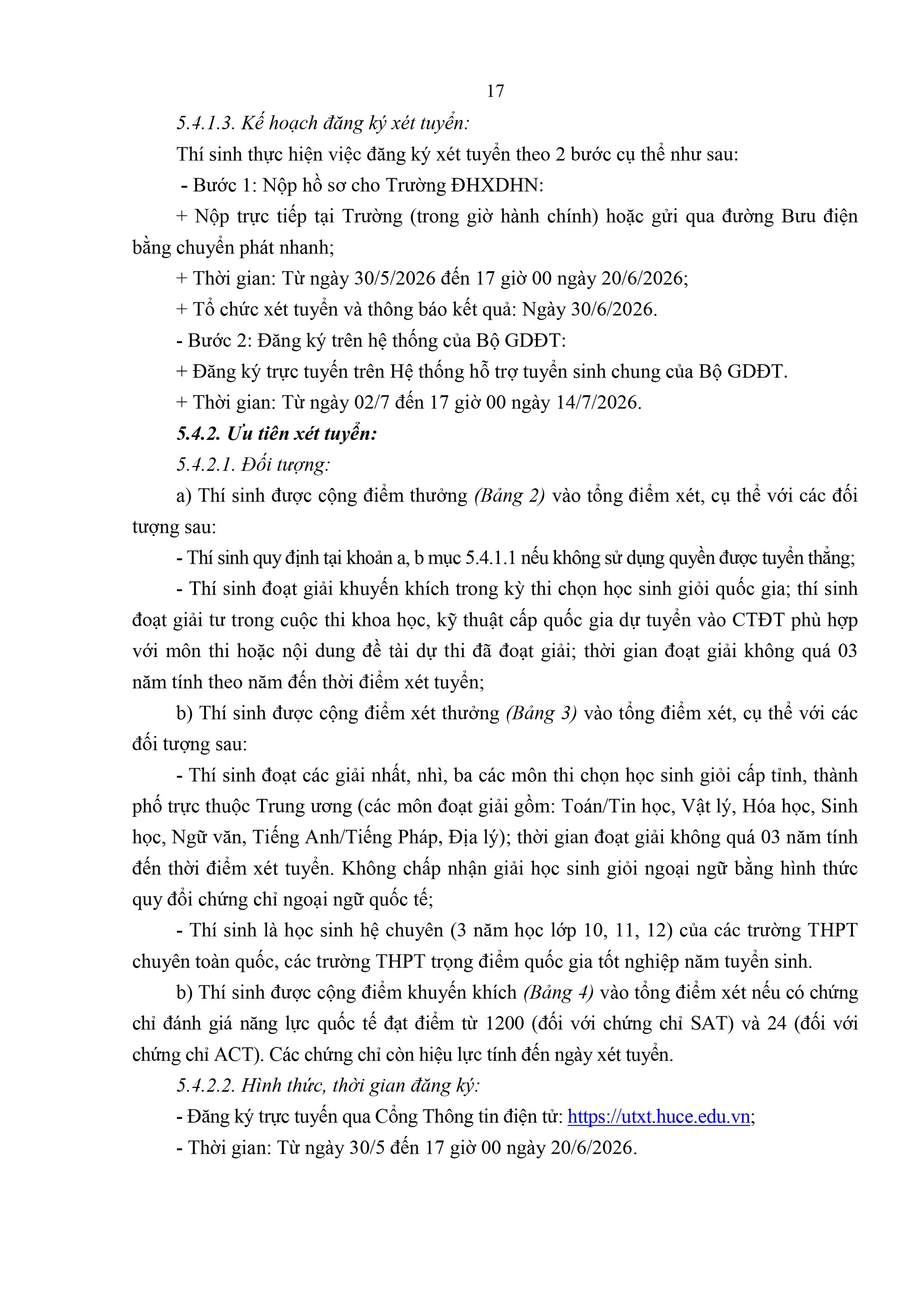 - Đăng ký trên hệ thống của Trường: https://utxt.huce.edu.vn từ ngày 30/5 đến 17 giờ 00 ngày 20/6/2026.