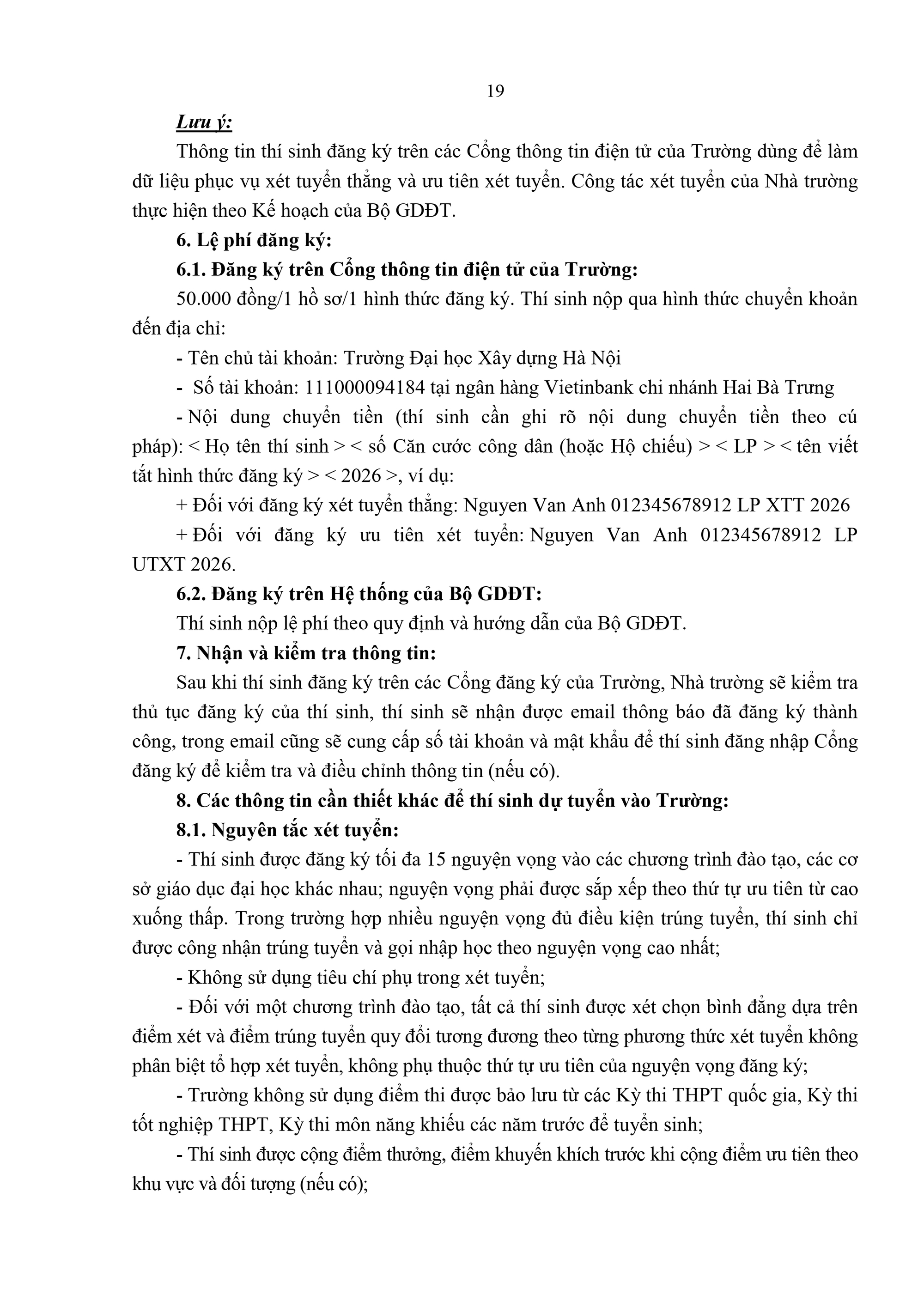 - Tên chủ tài khoản: Trường Đại học Xây dựng Hà Nội