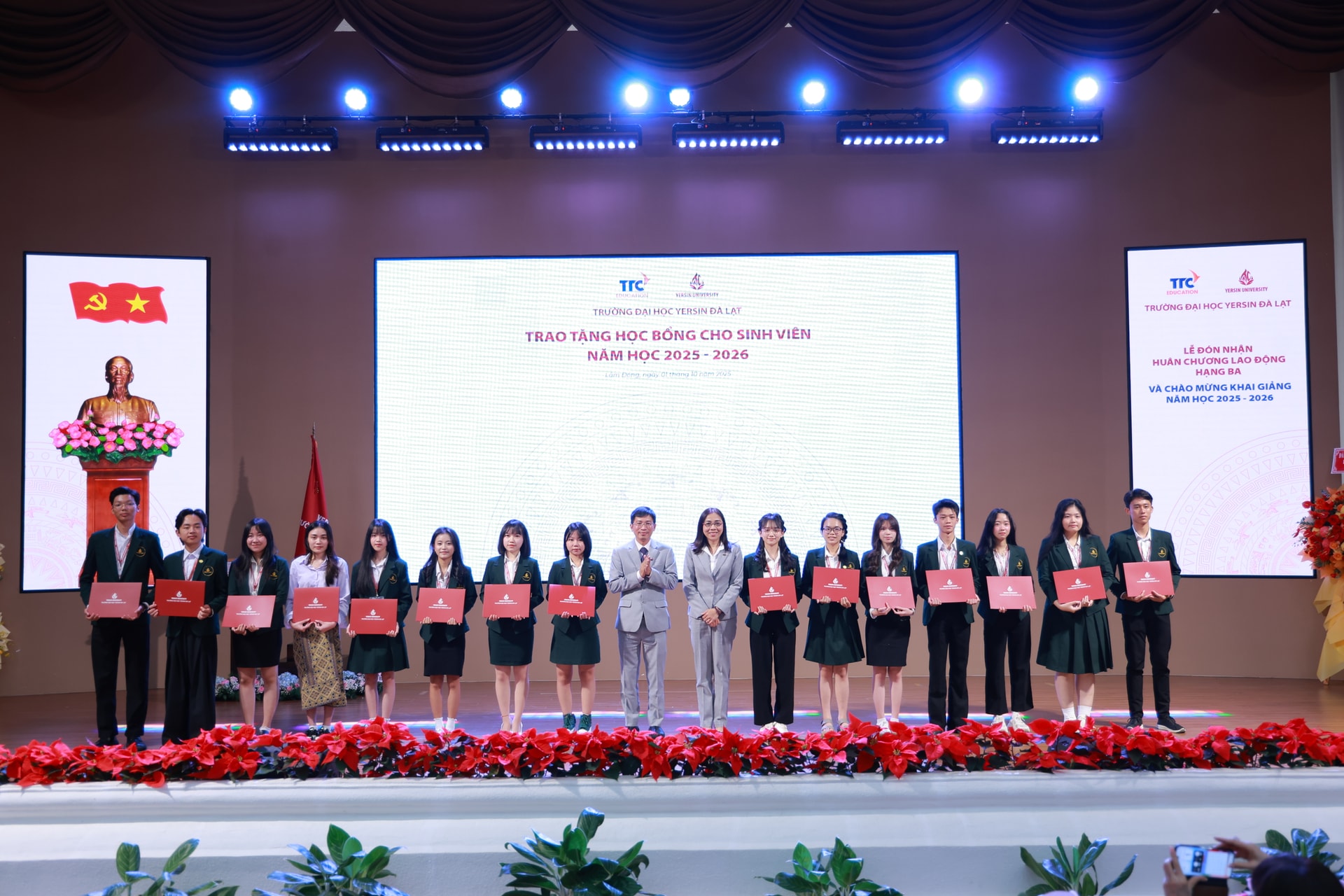 Dịp này, Trường Đại học Yersin Đà Lạt đã trao tặng 218 suất học bổng cho sinh viên trị giá hơn 2 tỷ đồng, với sự đồng hành tài trợ từ các Công ty thành viên trực thuộc Tập đoàn TTC và các doanh nghiệp, đối tác bên ngoài như Tổ chức Phi chính phủ Pháp (Hội L'Appel); ngân hàng BIDV; Nha khoa Tenshi; Công ty TNHH Thanh Quang…