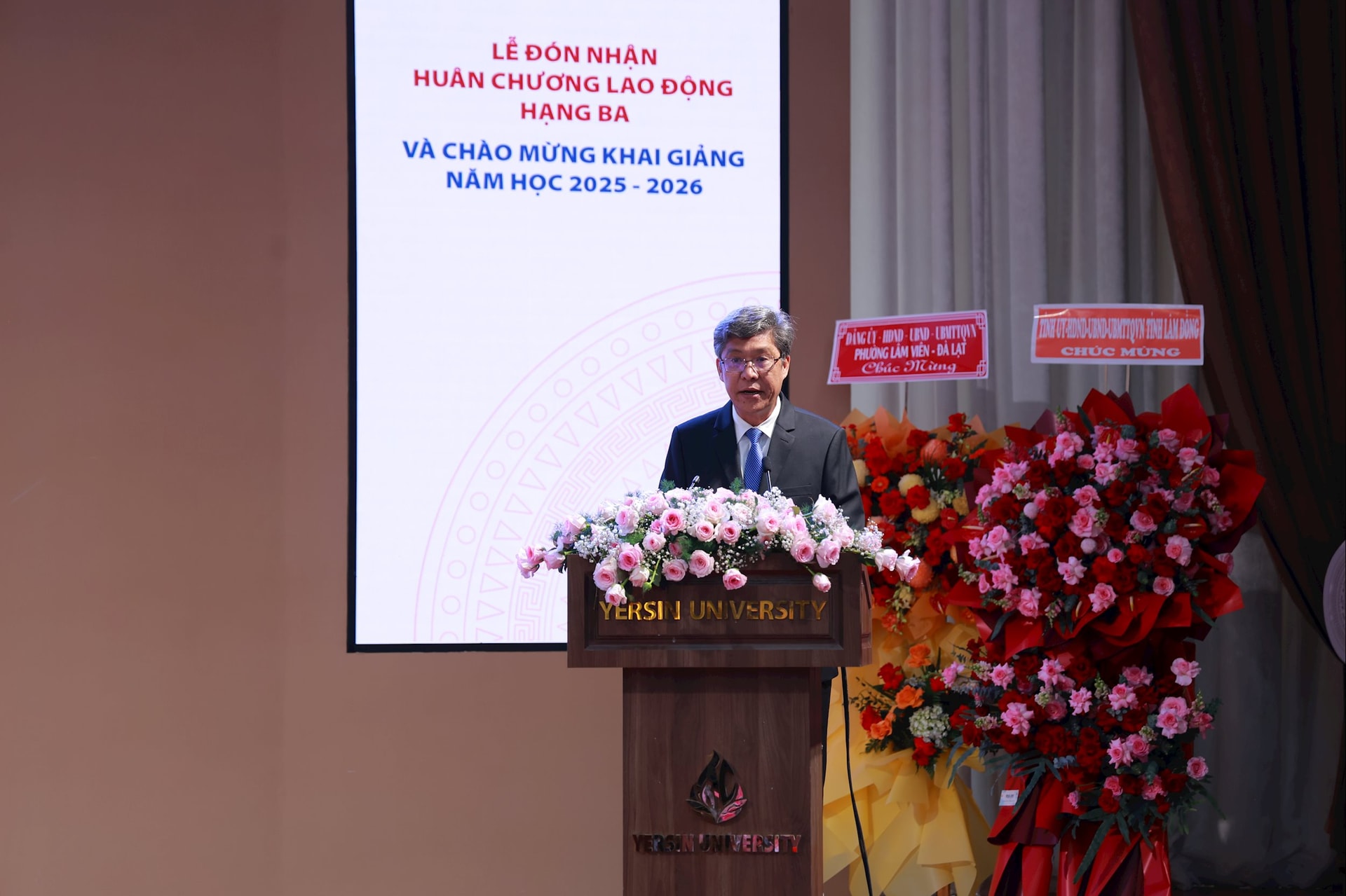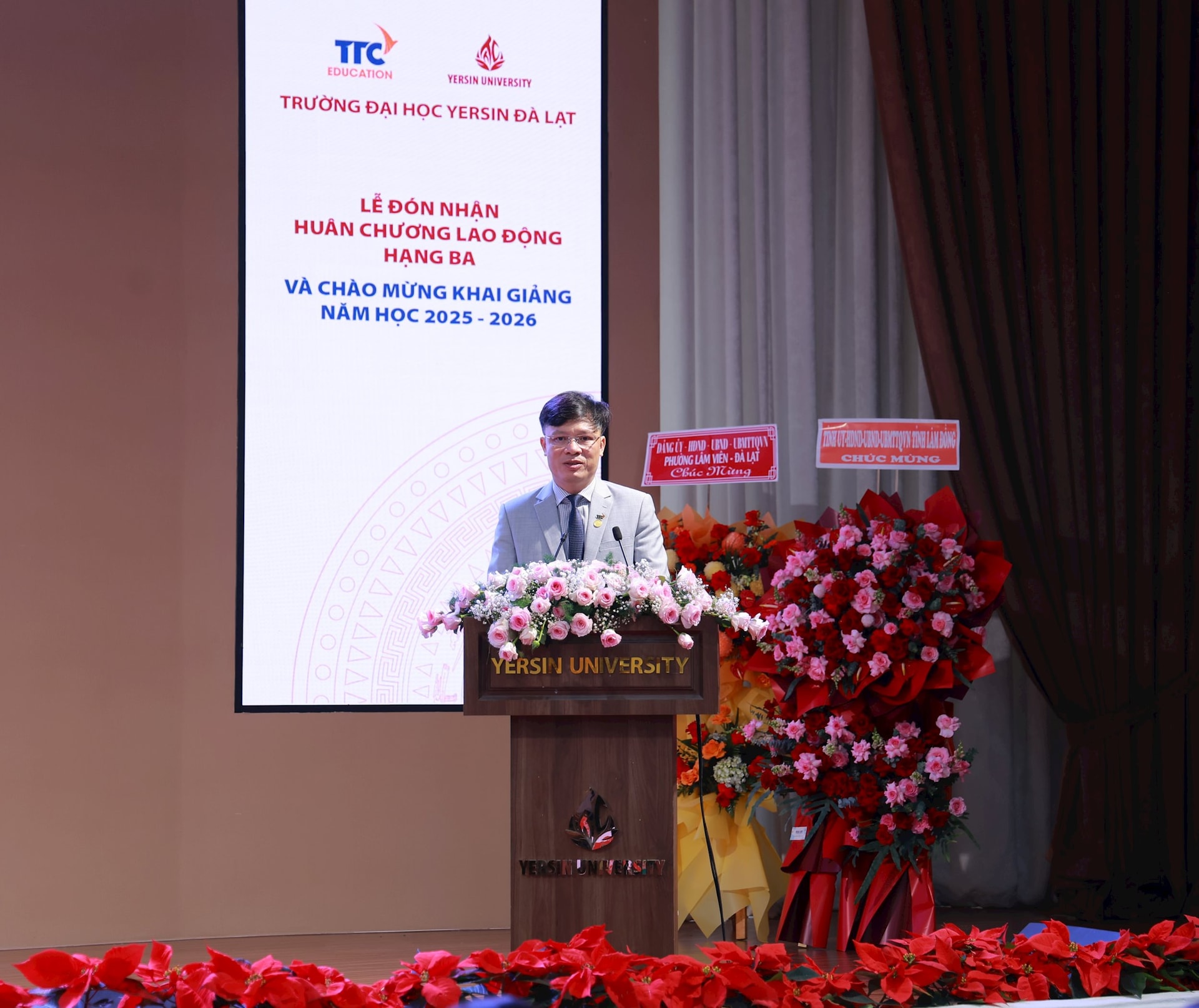 Phó Bí thư Tỉnh ủy Bùi Thắng trao Huân chương Lao động hạng Ba và Bằng khen của Chủ tịch nước cho Trường Đại học Yersin Đà Lạt