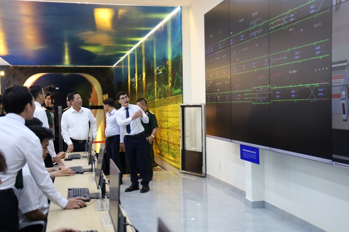 Bộ trưởng Bộ Xây dựng Trần Hồng Minh tham quan phòng mô phỏng điều khiển và khai thác đường sắt tốc độ cao.