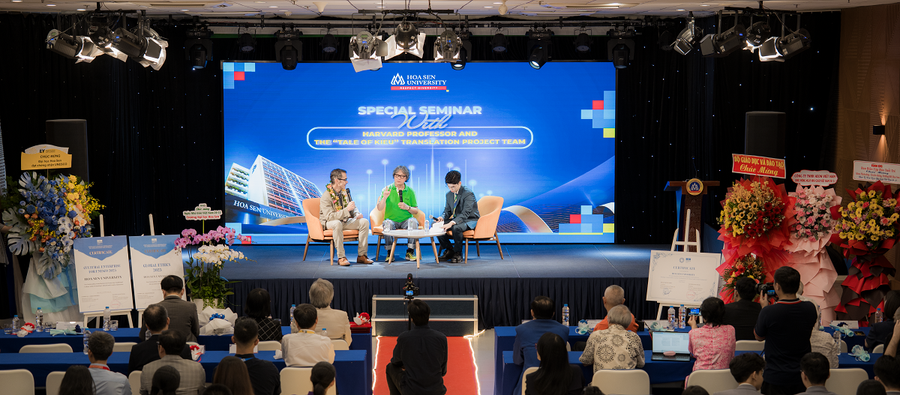 Tại sự kiện, Trường ĐH Hoa Sen còn tổ chức buổi nói chuyện chuyên đề cùng Giáo sư John Stauffer - giảng viên Khoa Văn, Đại học Harvard và Nhà thơ, dịch giả Nguyễn Đỗ - thành viên dự án dịch Truyện Kiều sang tiếng Anh phiên bản mới nhất.