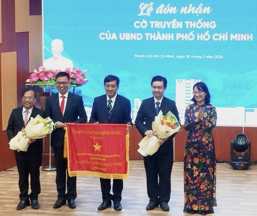Dịp này, trường Đại học Khoa học Tự nhiên vinh dự đón nhận Cờ truyền thống của UBND TPHCM.