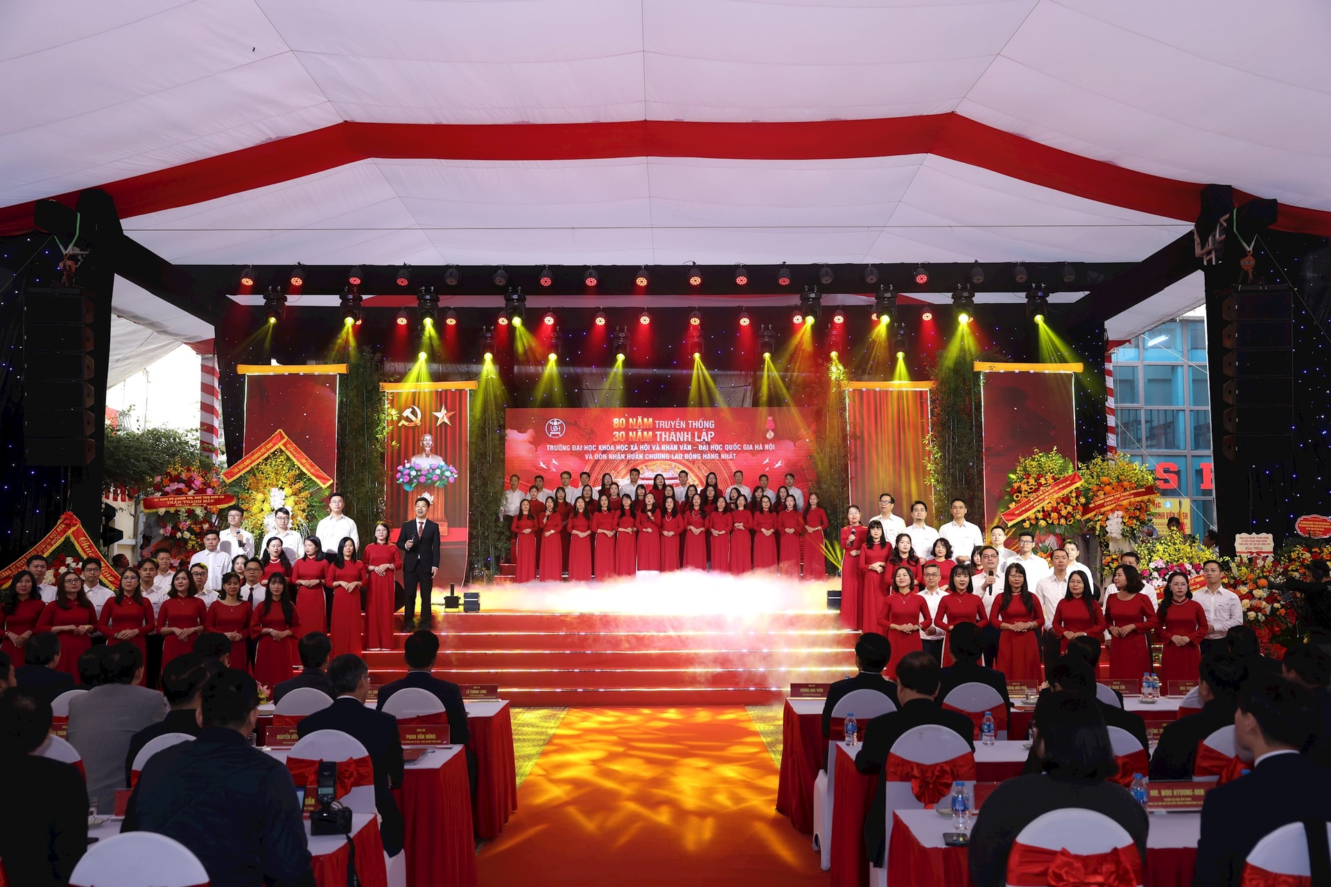 Diễn văn của Giáo sư, Tiến sĩ Hoàng Anh Tuấn, Hiệu trưởng nhà trường đã điểm lại quá trình xây dựng và phát triển của Trường Đại học Khoa học xã hội và nhân văn.
