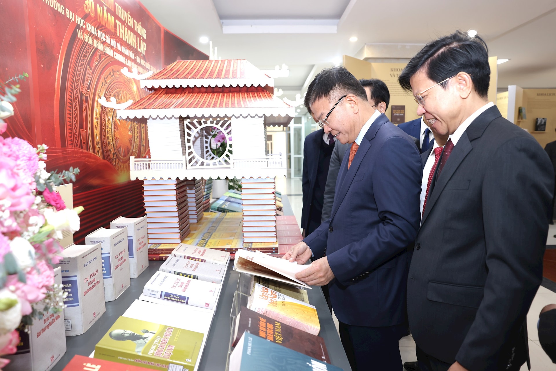 Phó Thủ tướng Chính phủ Lê Thành Long tham quan khu trưng bày tư liệu tại Trường Đại học Khoa học xã hội và nhân văn. Ảnh: BTC
