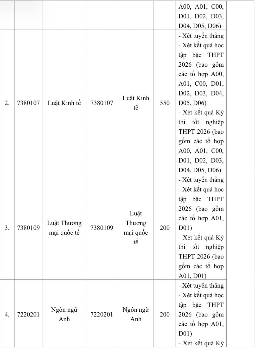 Phương thức 3: Xét tuyển dựa trên kết quả Kỳ thi tốt nghiệp THPT năm 2026