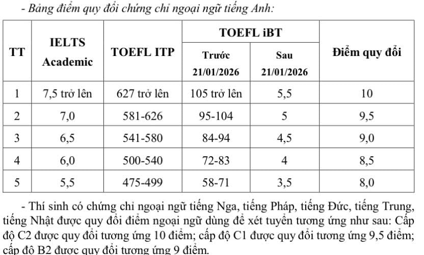 Điểm cộng là tổng điểm thưởng, điểm xét thưởng, điểm khuyến khích không vượt quá 10% điểm tối đa của thang điểm xét tuyển.