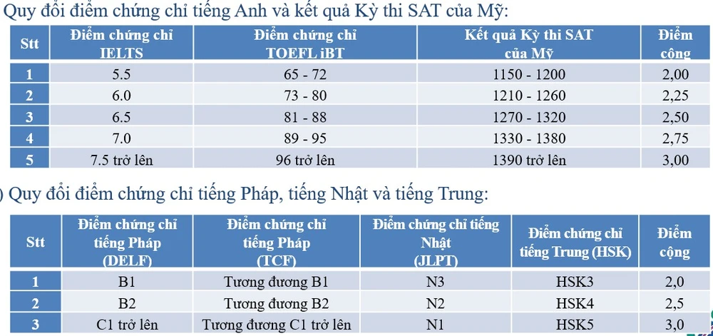 Nguyên tắc quy đổi điểm chứng chỉ ngoại ngữ, SAT thành điểm cộng trong xét tuyển năm 2026