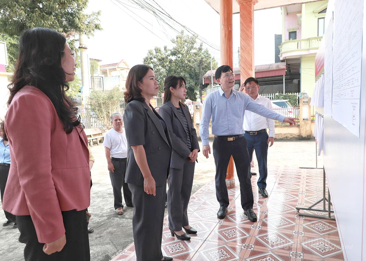 Trưởng Đoàn đại biểu Quốc hội chuyên trách khóa XV tỉnh Lý Thị Lan cùng đoàn công tác kiểm tra cơ sở vật chất, trang trí khánh tiết tại các điểm bỏ phiếu trên địa bàn xã Nhữ Khê.
