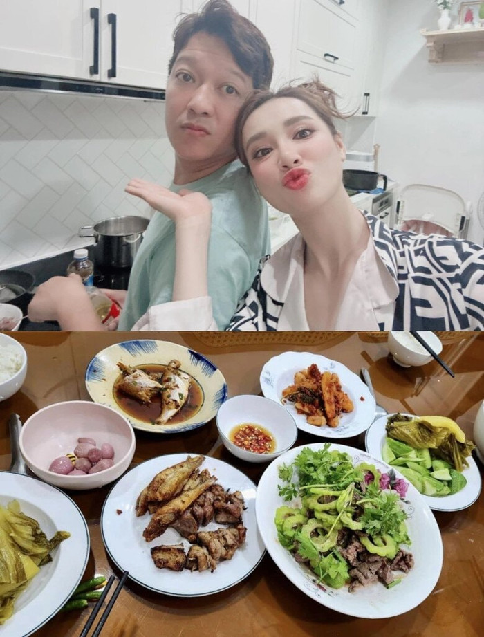 Không chỉ trong lần mang thai thứ ba, mà ở cả hai lần trước đó, danh hài xứ Quảng luôn khiến khán giả ngưỡng mộ vì cách anh chăm sóc bà xã. Nhã Phương từng kể, mỗi lần cô mang bầu, Trường Giang đều nấu sẵn đồ ăn, ướp nguyên liệu trước khi đi làm để vợ ở nhà chỉ cần sơ chế lại là có bữa ăn ngon. “Về mà thấy đồ ăn còn thì anh buồn lắm, nên hầu như tôi luôn ăn hết”, nữ diễn viên từng cười kể trong một buổi phỏng vấn.
