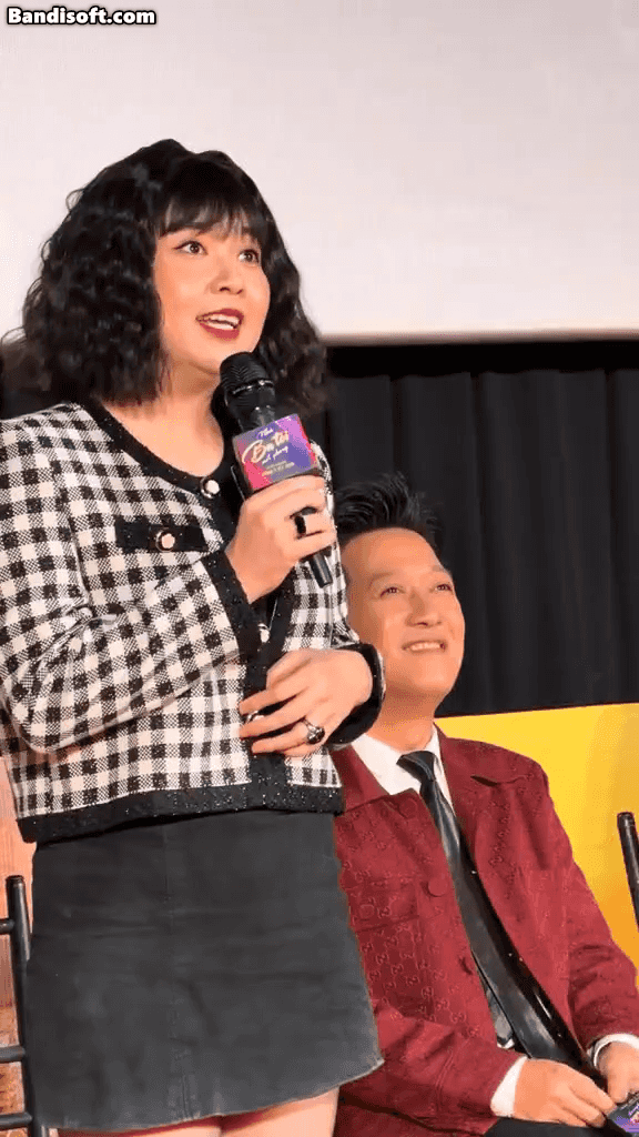 Chưa dừng lại ở đó, Lê Khánh tiếp tục khiến không khí thêm rôm rả khi khẳng định cô gần như "không cần hóa thân", bởi ngoài đời sao thì lên phim gần như vậy, thậm chí còn tự nhận mình "trẻ đẹp từ tâm hồn đến ngoại hình". Câu nói này ngay lập tức khiến cả khán phòng bật cười lớn, trong khi Trường Giang chỉ biết vẫy tay phủ nhận đầy hài hước.