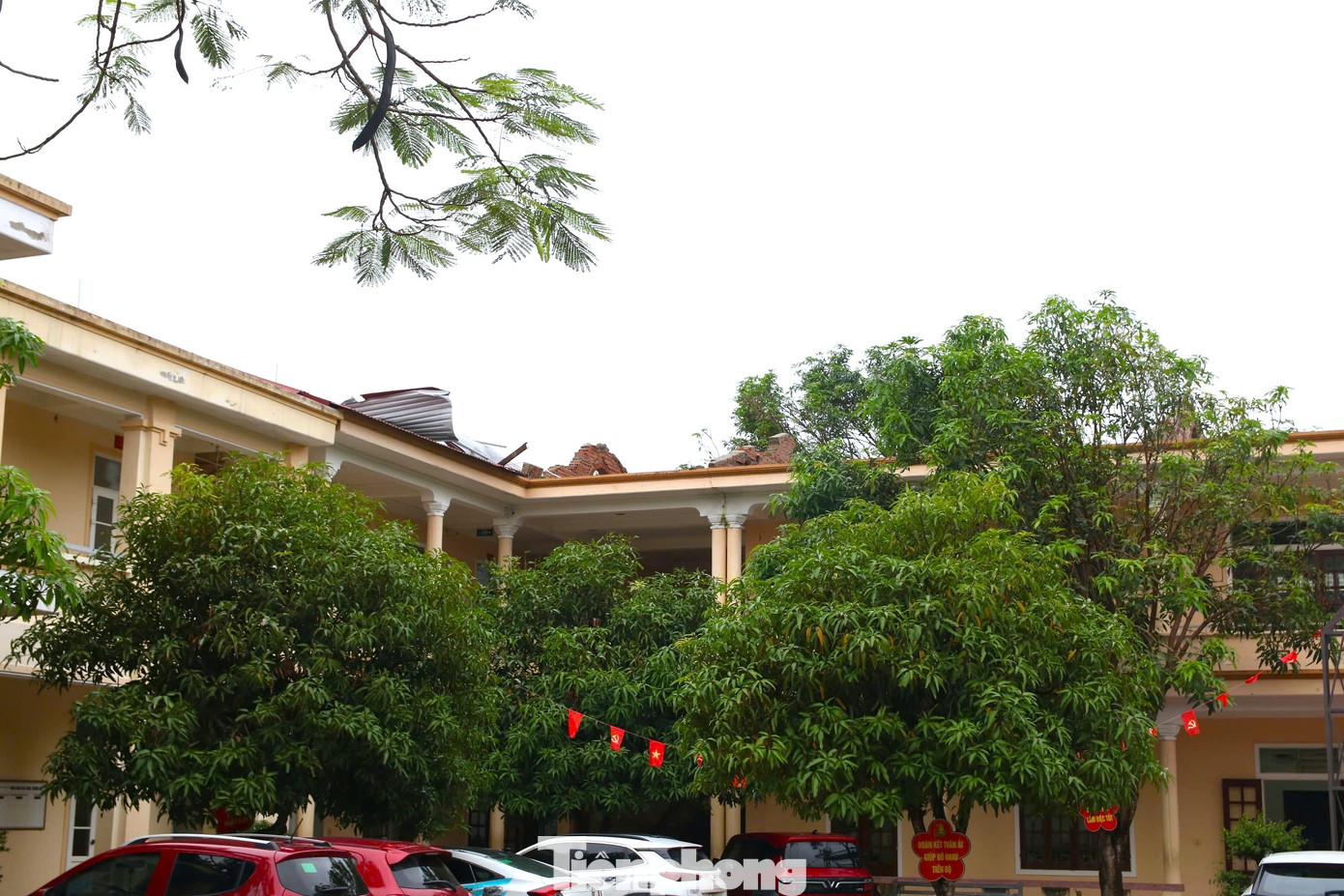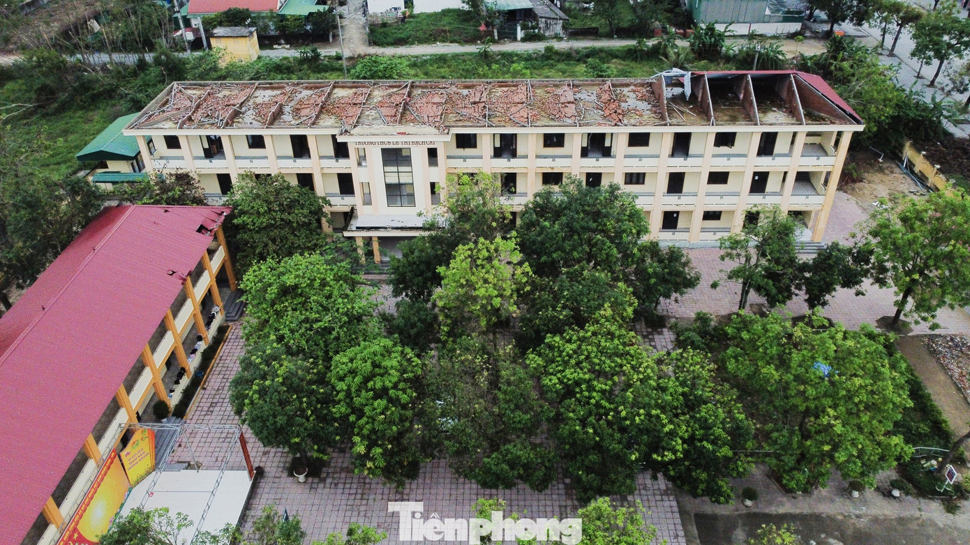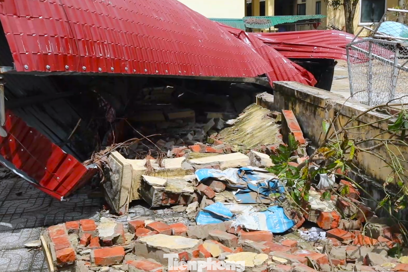 Mưa bão cũng khiến khoảng 50m tường rào bị đổ sập, khuôn viên trường trở nên trống trải. Đặc biệt, mái tôn của dãy nhà 3 tầng bị cuốn bay hoàn toàn, khiến mỗi khi trời mưa, nước thấm dột xuống các phòng học, làm hư hỏng bàn ghế và thiết bị giảng dạy. Nhà trường buộc phải di chuyển đồ dùng xuống tầng dưới. Một số thiết bị không thể di chuyển được phải dùng bạt che tạm.