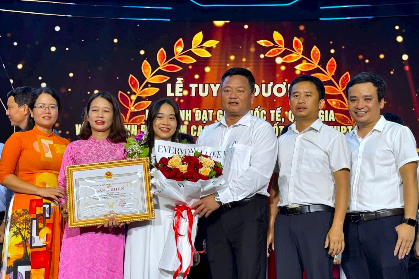 Học sinh Trường THPT Thanh Chương 3 được UBND tỉnh Nghệ An tặng bằng khen tại Lễ tuyên dương học sinh đạt giải Quốc tế, Quốc gia và học sinh đạt điểm cao trong kỳ thi Tốt nghiệp THPT Quốc gia.