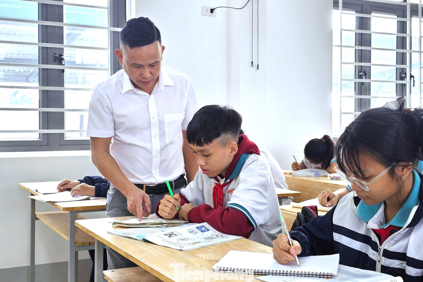 Ngày 3/12 là buổi học thứ ba của học sinh, giáo viên Trường THCS Nghi Ân (phường Vinh Phú, tỉnh Nghệ An) chuyển đến cơ sở 2 sau thời gian dài ngôi trường bị bỏ hoang. Không khí vui tươi, háo hức tràn ngập sân trường. Từ sáng sớm, học sinh các khối lớp đã có mặt đầy đủ, bước vào phòng học sạch sẽ, rộng rãi và được trang bị hiện đại.