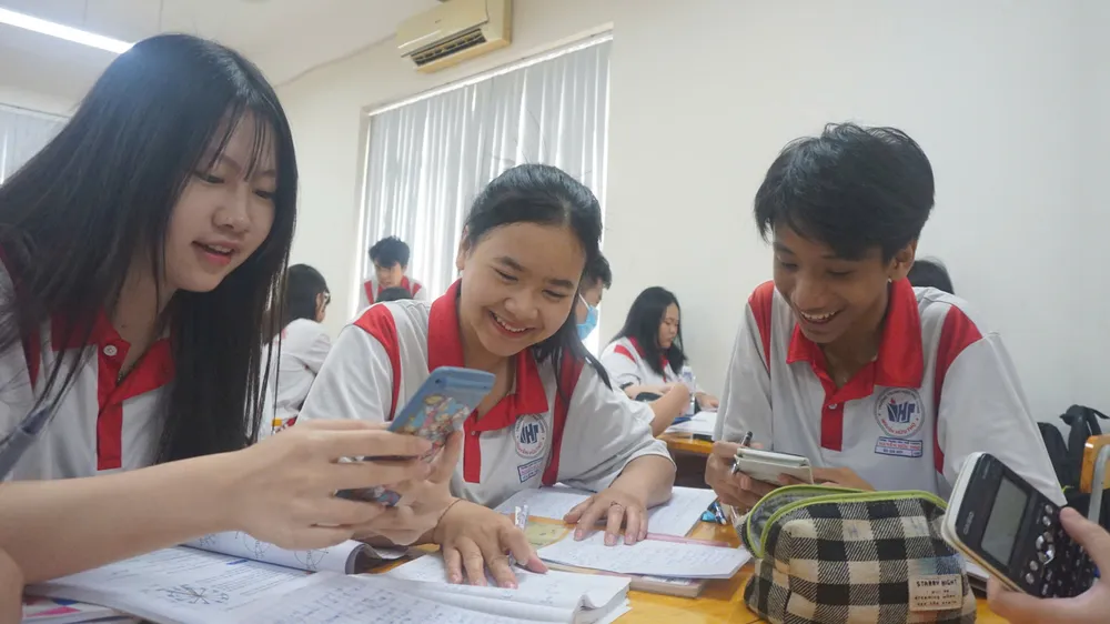 Học sinh Trường THPT Nguyễn Hữu Thọ, phường Xóm Chiếu, trong một giờ học. Ảnh: NQ