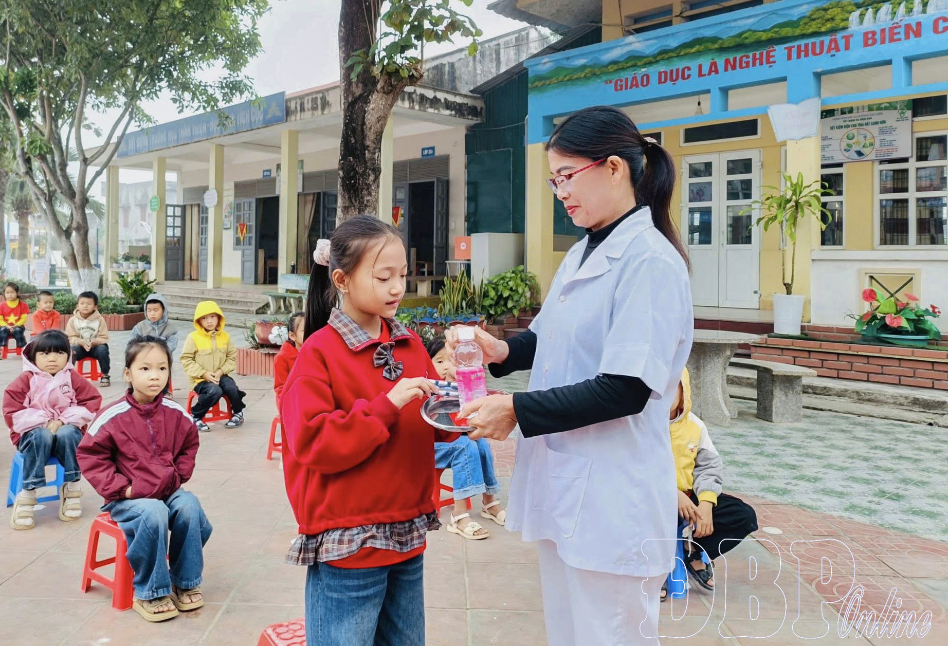 Không chỉ ở bậc mầm non, các trường tiểu học, trung học trên địa bàn tỉnh cũng đã và đang triển khai quyết liệt các biện pháp phòng bệnh, nhất là trước nguy cơ xuất hiện các bệnh truyền nhiễm theo mùa. Tại Trường Tiểu học Thanh Yên (xã Thanh Yên), công tác y tế trường học luôn được quan tâm thường xuyên, gắn với từng buổi học, từng lớp học.