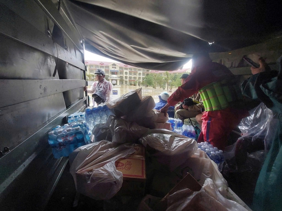 Đoạn đường đến trường ngập sâu, bị cấm qua lại 5 - 7km. Sáng 19/11, nước vẫn mênh mông, nhà trường theo xe đặc chủng quân đội vượt dòng nước đưa bánh mỳ, mì tôm và nước suối vào tiếp tế cho các sinh viên bị mắc kẹt trong ký túc xá.