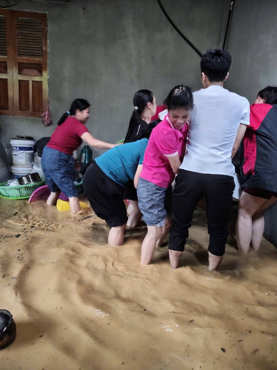 Tại trường Tiểu học Tân Tiến (Tuyên Quang), do ảnh hưởng của mưa lũ kéo dài, một số học sinh và toàn bộ thầy cô giáo ở các điểm trường đang gặp nhiều khó khăn trong việc di chuyển. Trường hiện mất điện, mất nước, điều kiện sinh hoạt thiếu thốn. Dù vậy, các thầy cô giáo vẫn kiên cường bám trường, bám lớp, chăm sóc chu đáo cho học sinh đang bị mắc kẹt, đồng thời hỗ trợ người dân quanh trường dọn dẹp, di chuyển đồ đạc tránh lũ và nấu cơm cho các em ở lại. Ảnh: FBNT.