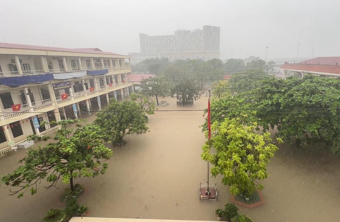 Ngay tại Hà Nội, do ảnh hưởng của cơn bão số 10, 11, từ ngày 30/9 cho đến ngày 8/10, toàn bộ khuôn viên trường Tiểu học Tây Mỗ (phường Tây Mỗ) luôn trong tình trạng ngập sâu trong biển nước. Học sinh buộc phải nghỉ học trực tiếp, chuyển học trực tuyến để đảm bảo an toàn. Ảnh: FBNT.