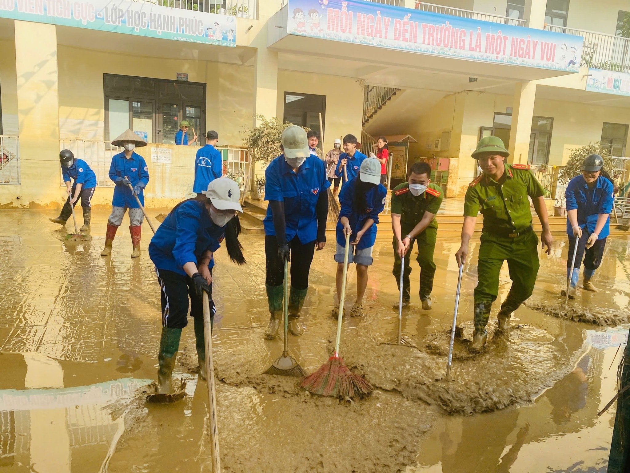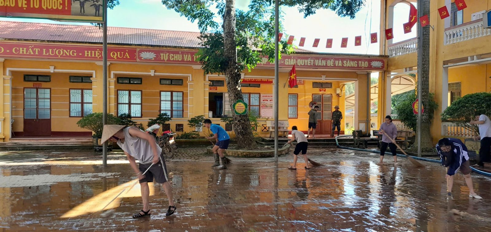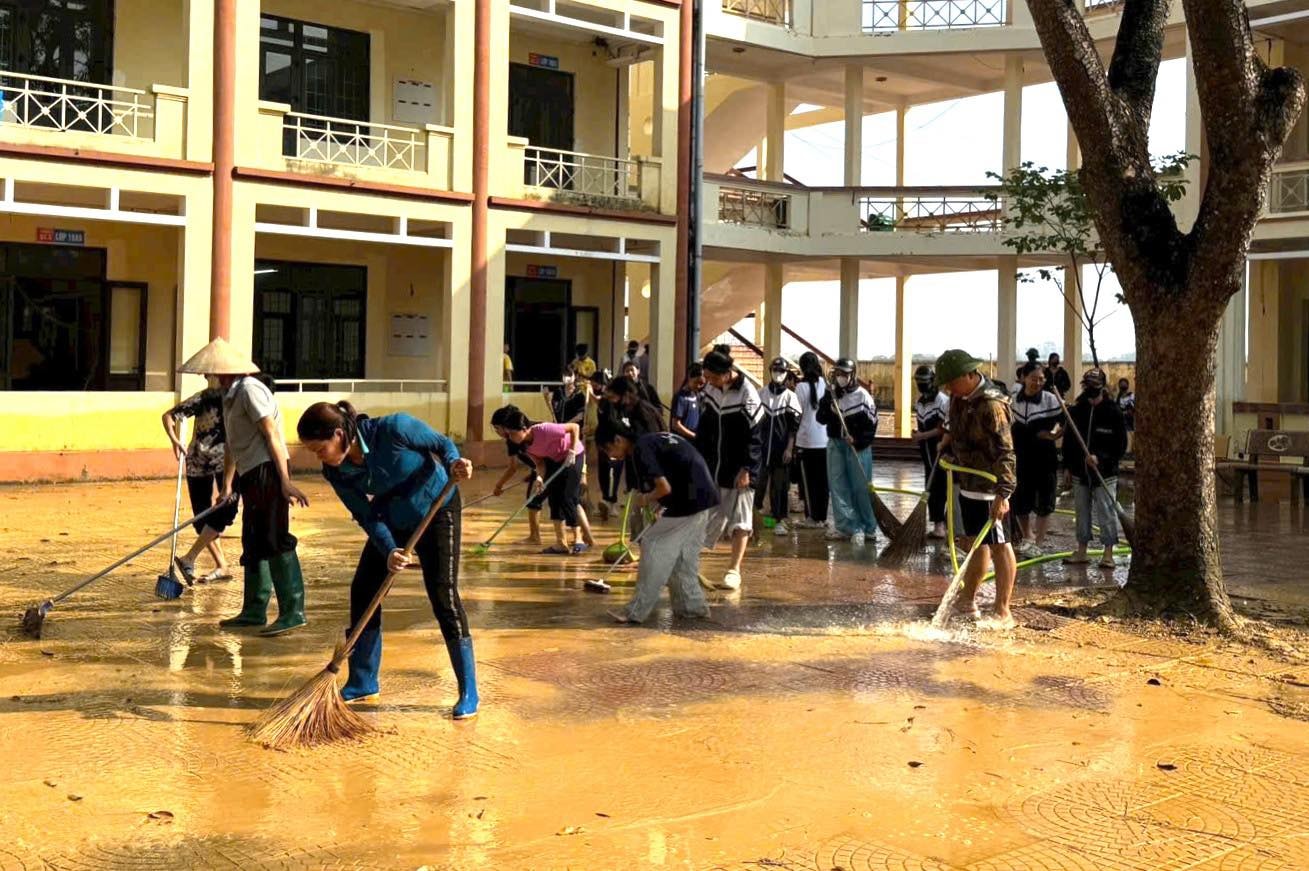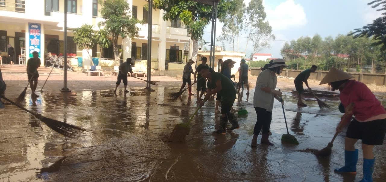 Đồng hành cùng lực lượng chức năng là các thầy cô, học sinh, sinh viên tình nguyện và phụ huynh. Ở các xã lân cận, hình ảnh đoàn viên, công an, chiến sĩ, lực lượng dân quân, người dân cùng nhau kê lại đồ đạc, thu gom rác, tiêu độc khử trùng diễn ra suốt nhiều ngày. Không khí tất bật nhưng ấm áp tình người. Ai nấy đều hướng tới mục tiêu chung: đời sống ổn định trở lại, trường lớp sớm sáng đèn.