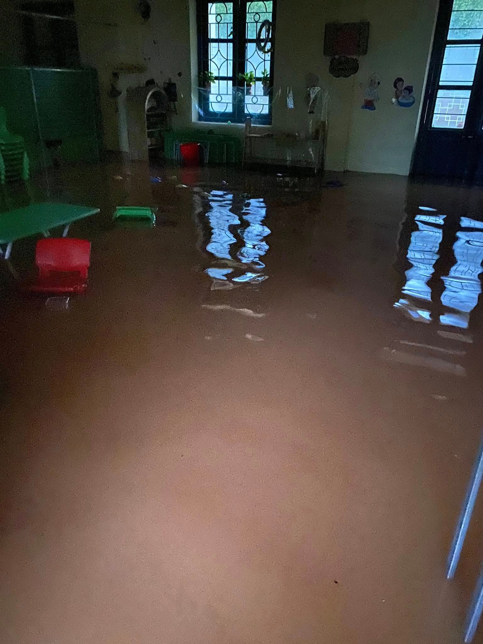 Trường Mầm non Tân Thanh, một trong những trường bị chịu ảnh hưởng nặng nề nhất trong đợt lũ vừa qua, nước lũ dâng lên cao tới 1,5m ngập toàn bộ tầng 1; do nằm ở vùng trũng nên nước trong khuôn viên rút chậm hơn ngoài đường tới ba ngày.