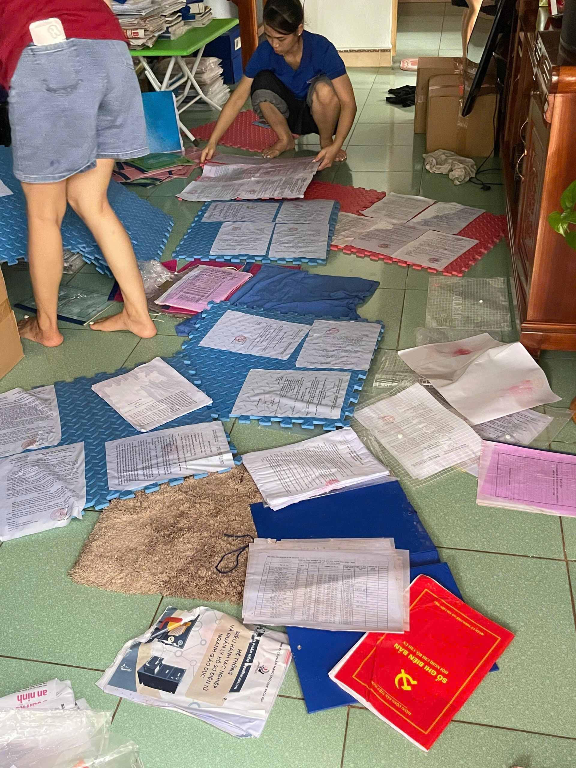 Sách vở, tài liệu của cô trò trường Mầm non Tân Thanh gần như đã bị hư hỏng toàn bộ