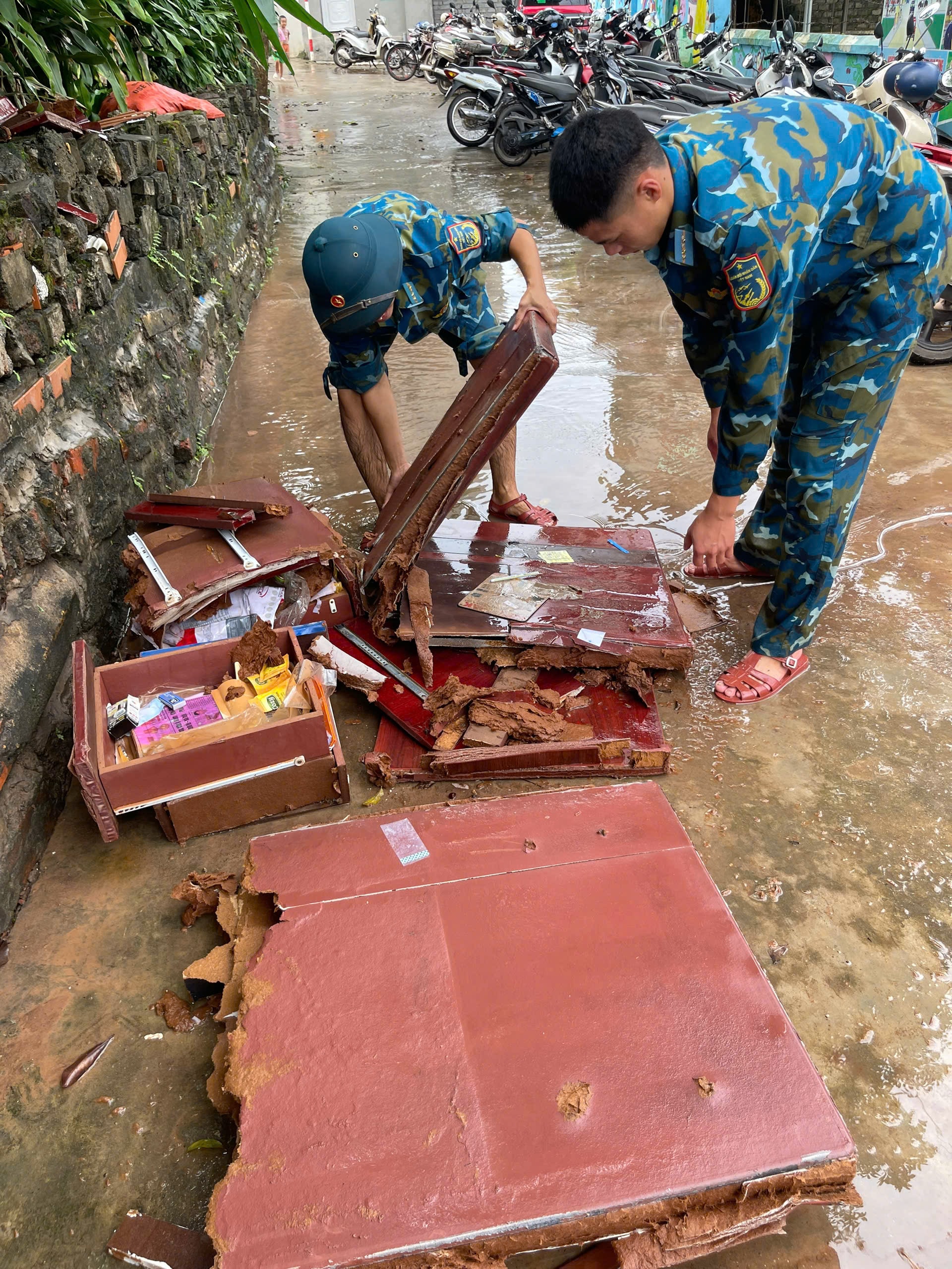 Học sinh, công an chung tay khắc phục hậu quả sau bão số 11 - Ảnh Trường THPT Hiệp Hòa số 3