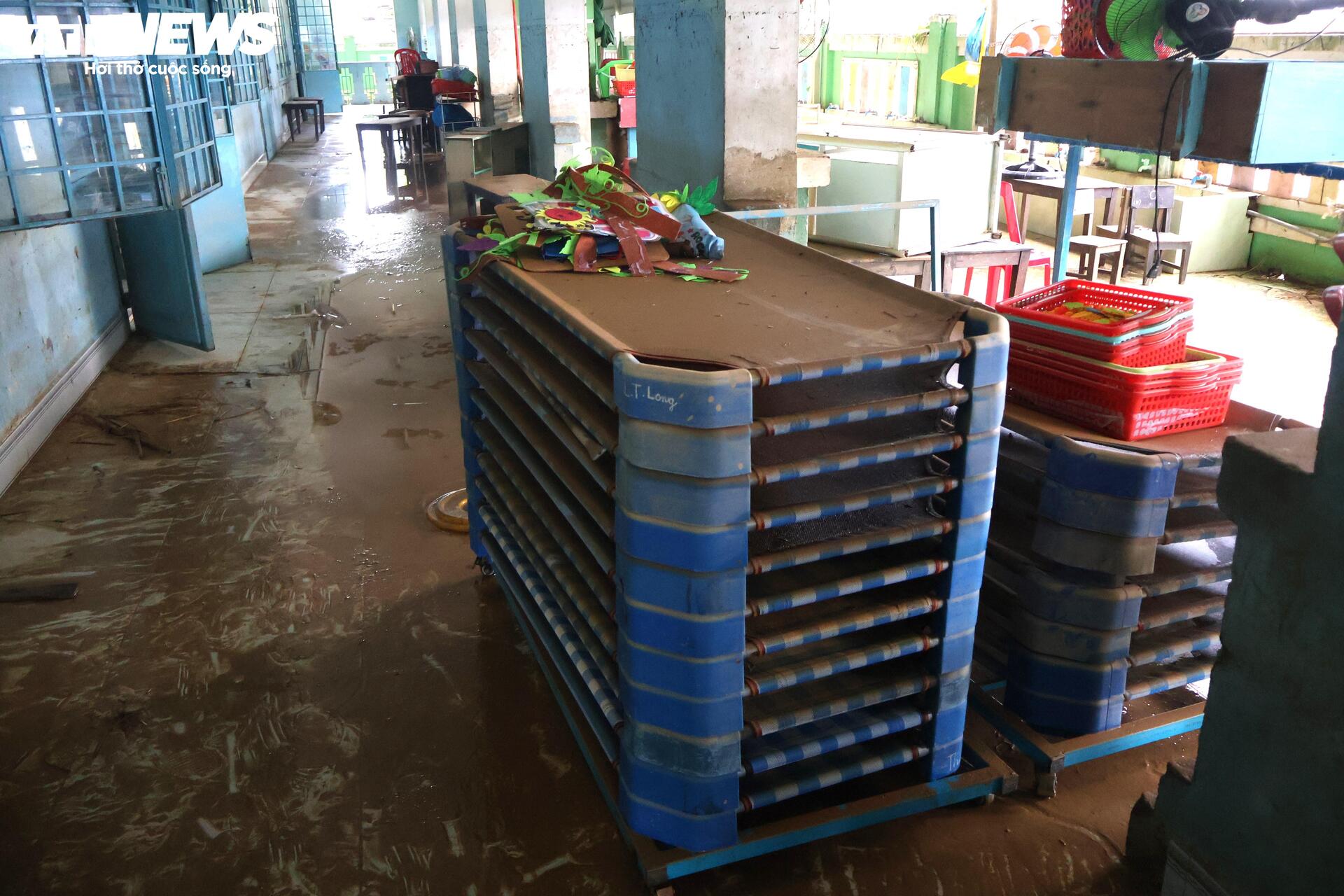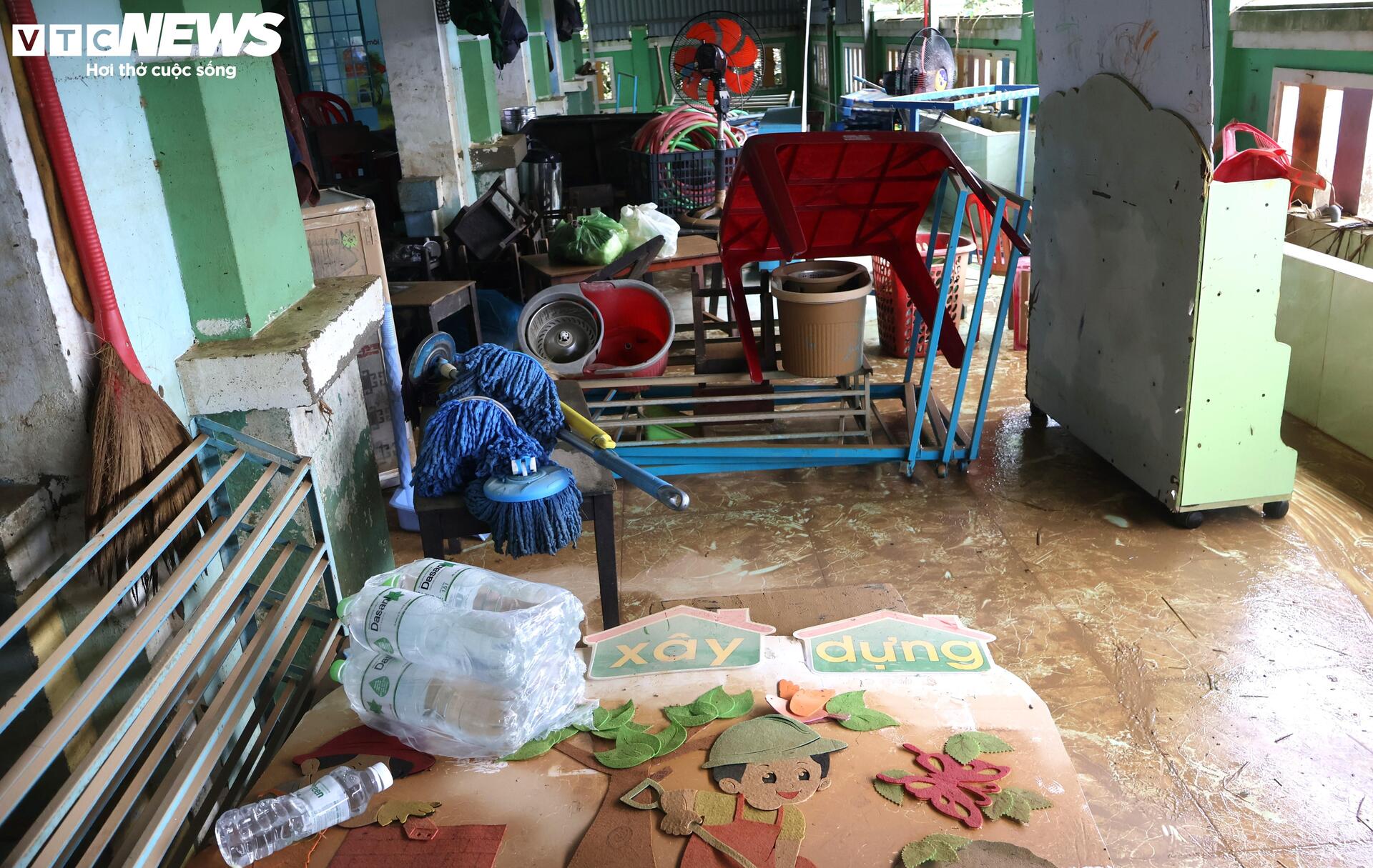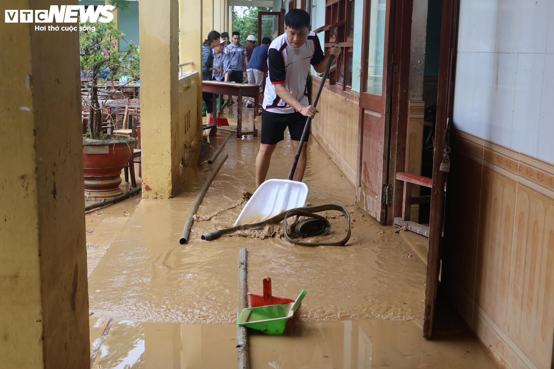 "Trong khi đó, ở điểm trường chính tại thôn Hà Nam, do trường có 2 tầng nên các thiết bị dạy học đã được di chuyển lên cao. Trong hôm nay, các cô giáo đang tất bật thu dọn bùn non để sớm đón các em quay trở lại trường" - cô Hoa nói.