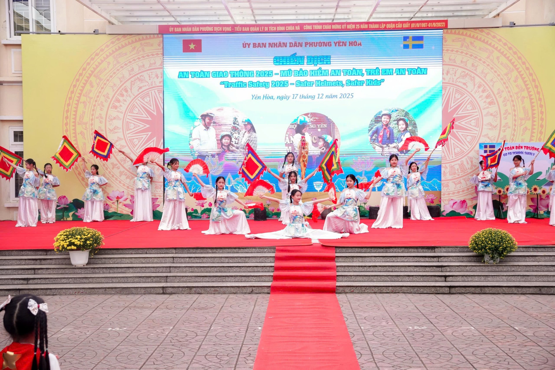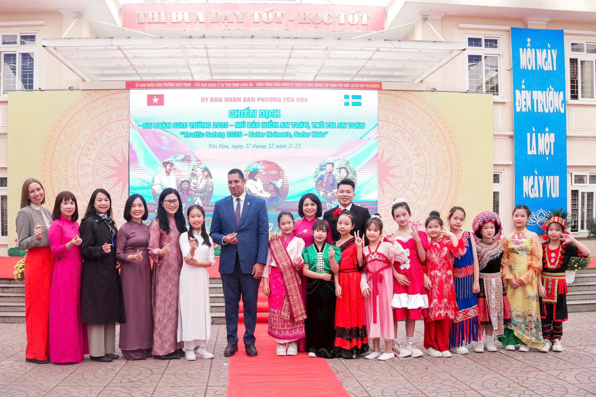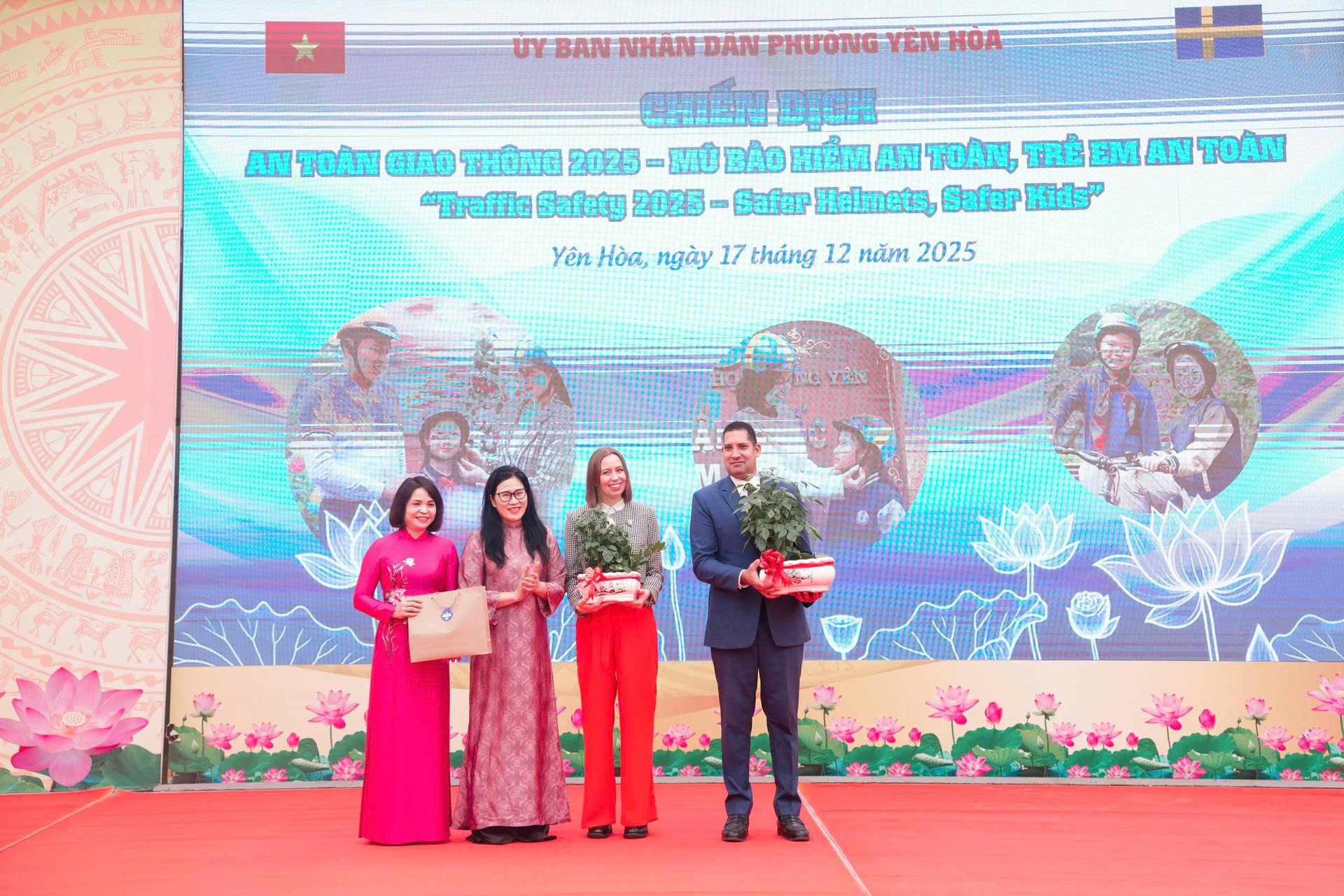 Ngày 17-12, tại Trường Tiểu học Trung Yên (phường Yên Hòa), Đại sứ quán Thụy Điển tại Hà Nội phối hợp cùng Protec và UBND phường Yên Hòa triển khai Chiến dịch An toàn giao thông 2025 với chủ đề “Mũ bảo hiểm an toàn, trẻ em an toàn”.