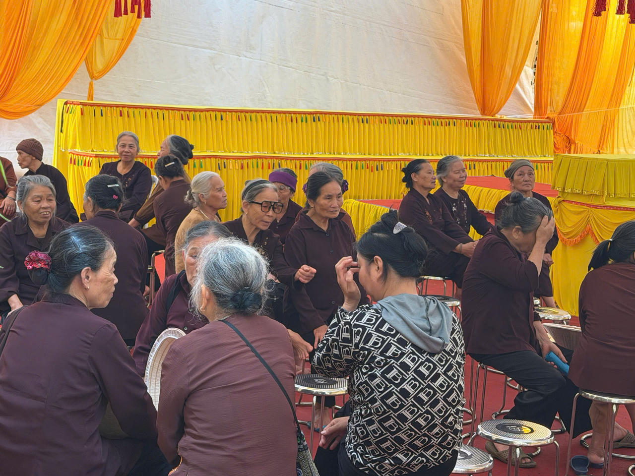 Tăng ni, Phật tử và người dân địa phương tập trung về Chùa Đoài Lâm và Chùa Thánh Long, nơi sẽ cử hành tang lễ và an táng Trưởng lão Hòa thượng Thích Thanh Dục.
