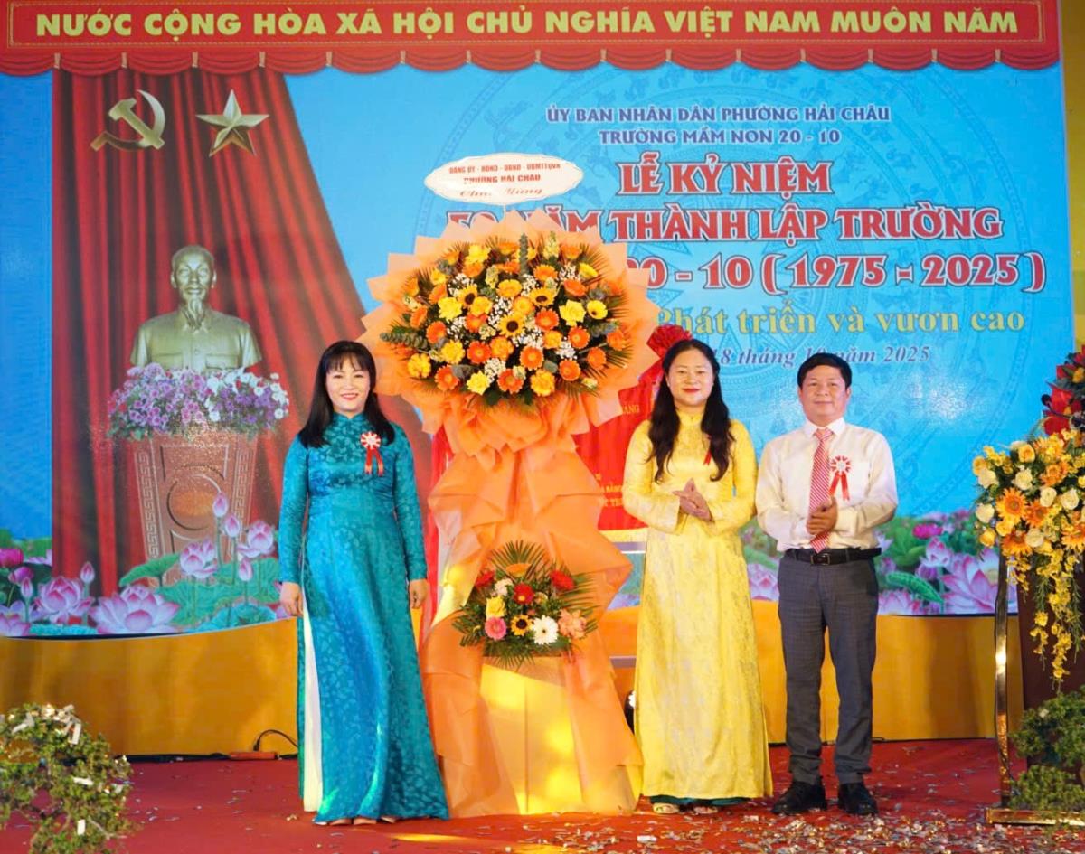 Phát biểu chúc mừng tại buổi lễ, Bí thư Đảng ủy phường Hải Châu Cao Thị Huyền Trân, đánh giá cao những nỗ lực, cống hiến của tập thể nhà trường trong suốt chặng đường 50 năm qua, đặc biệt là việc chú trọng bồi dưỡng đội ngũ, phát huy sáng tạo và ứng dụng hiệu quả các mô hình giáo dục mới.