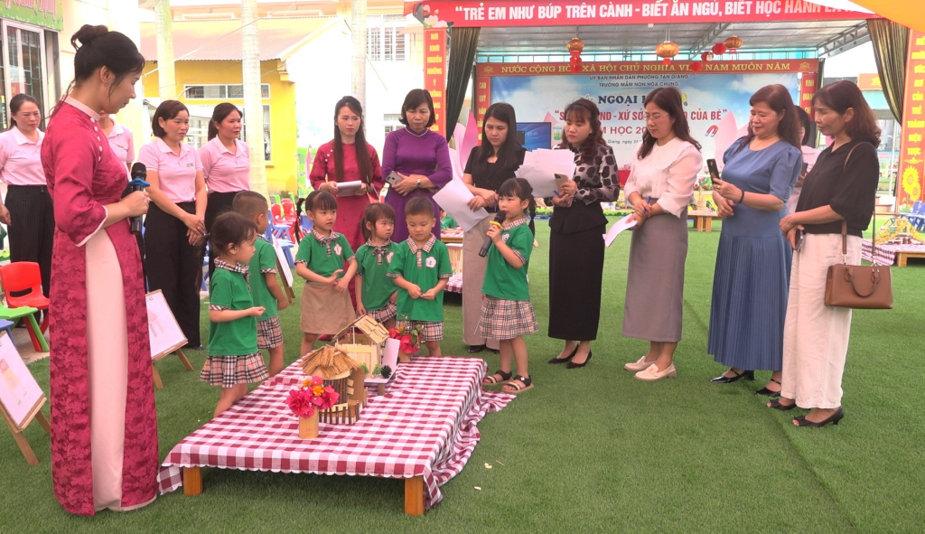 Ban Giám khảo chấm điểm cho hoạt động trải nghiệm tại buổi ngoại khóa.
