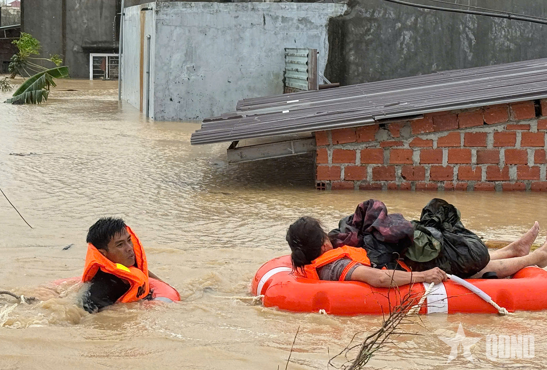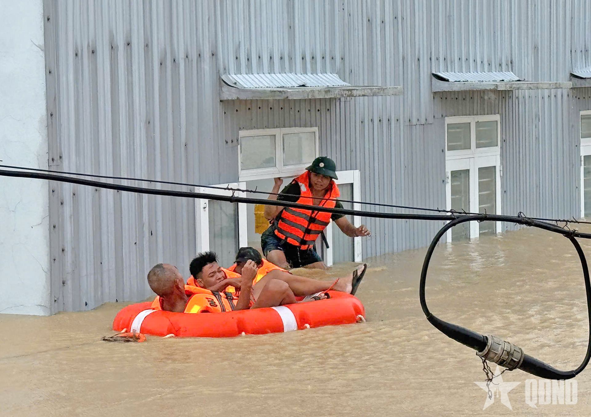 “Khi chúng tôi đến, nhiều nhà dân nước đã ngập sâu, người già, trẻ nhỏ bị mắc kẹt, cô lập, rất nguy hiểm. Trước tình huống đó, cán bộ, chiến sĩ, học viên Trường Quân sự Quân đoàn 34 không quản ngại khó khăn, nguy hiểm, ứng cứu được 11 người bị cô lập và di dời nhiều hộ dân đến nơi an toàn”, Thượng tá Phạm Văn Nam thông tin.