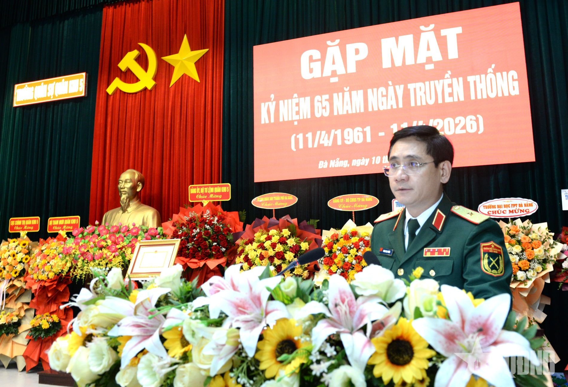 Phát biểu tại buổi gặp mặt, Thiếu tướng Phan Đại Nghĩa, Phó tư lệnh, Tham mưu trưởng Quân khu 5 ghi nhận biểu dương những thành tích, kết quả đạt được của cán bộ, chiến sĩ, học viên Trường Quân sự Quân khu 5 trong 65 năm qua. Để hoàn thành tốt nhiệm vụ trong thời gian tới, Thiếu tướng Phan Đại Nghĩa yêu cầu Đảng ủy, Ban giám hiệu Nhà trường thường xuyên quán triệt sâu sắc và nắm vững quan điểm, đường lối, chủ trương của Đảng, chính sách, pháp luật của Nhà nước; các nghị quyết, chỉ thị của Quân ủy Trung ương, Bộ Quốc phòng, Đảng ủy, Bộ tư lệnh Quân khu về nhiệm vụ quân sự quốc phòng nói chung, nhiệm vụ giáo dục, đào tạo và xây dựng Quân đội nói riêng.