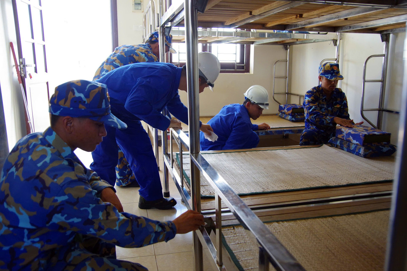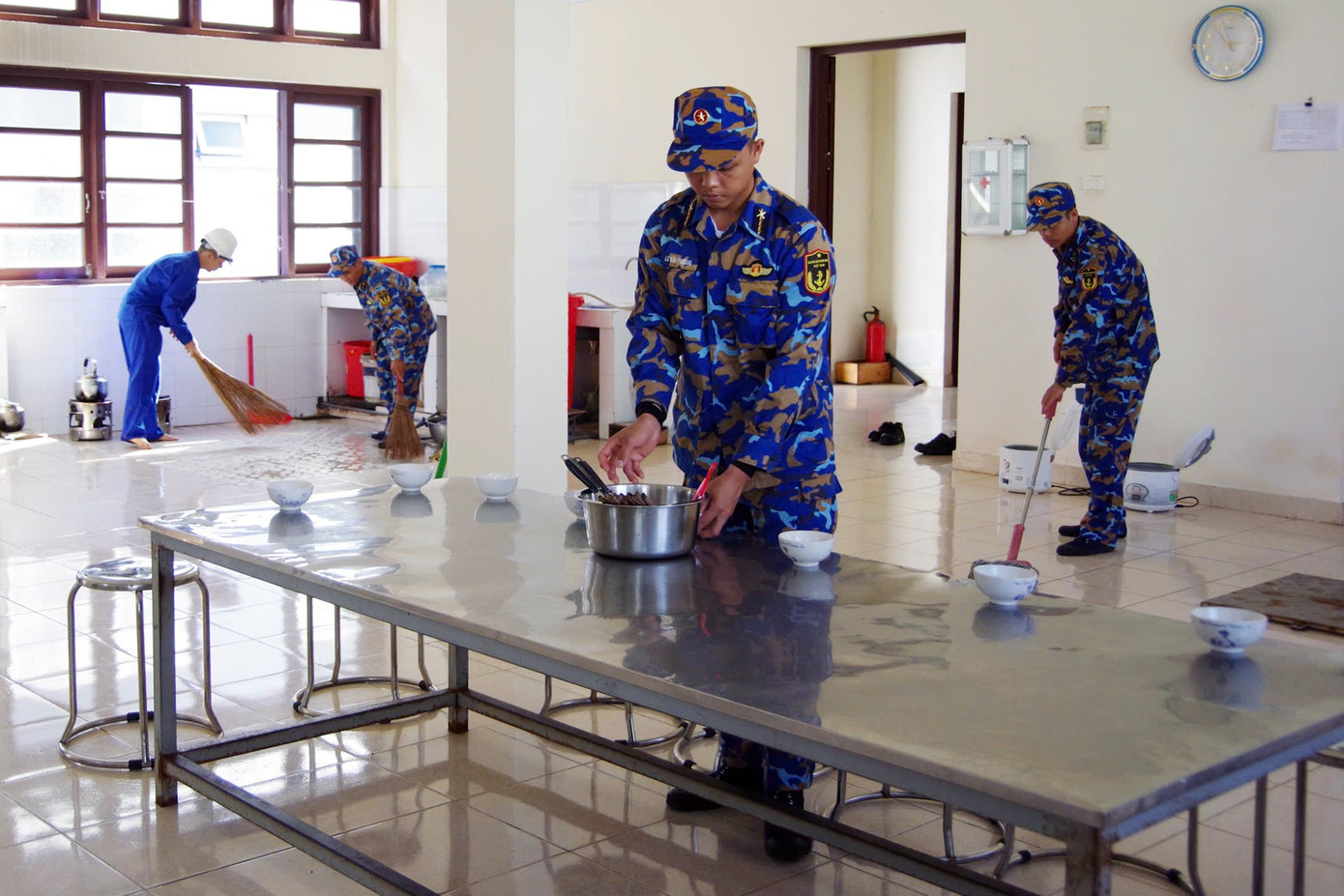 Chiến sĩ chuẩn bị nơi ăn và chỗ ở chu đáo cho các ngư dân tránh bão. Ảnh: N.A.