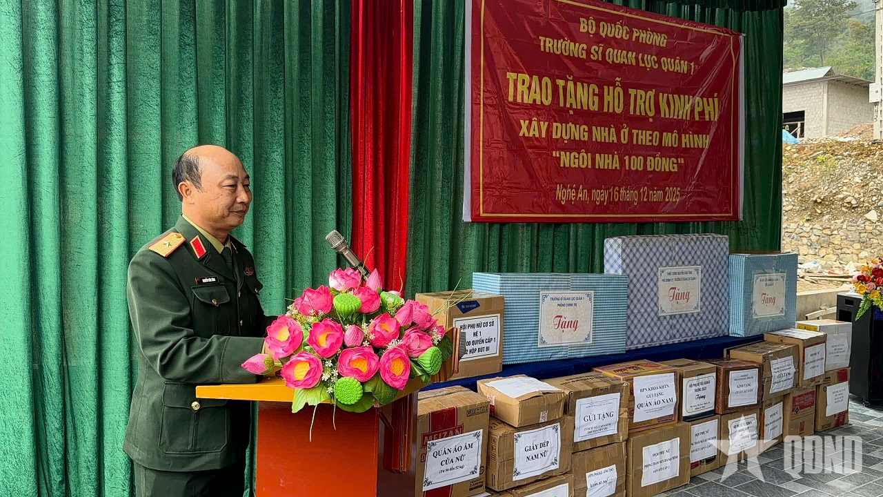Phát biểu tại buổi trao tặng, Thiếu tướng Nguyễn Văn Tăng nhấn mạnh: “Nhà trường chia sẻ sâu sắc với những mất mát mà gia đình đồng chí Bảo phải gánh chịu sau thiên tai; mong muốn gia đình sớm vượt qua khó khăn, ổn định cuộc sống và đồng chí Bảo tiếp tục nỗ lực học tập, rèn luyện để xứng đáng với sự quan tâm của lãnh đạo, chỉ huy các cấp. Nhà trường trân trọng cảm ơn sự phối hợp, tạo điều kiện của cấp ủy, chính quyền và bà con nhân dân địa phương để đoàn công tác hoàn thành nhiệm vụ”.