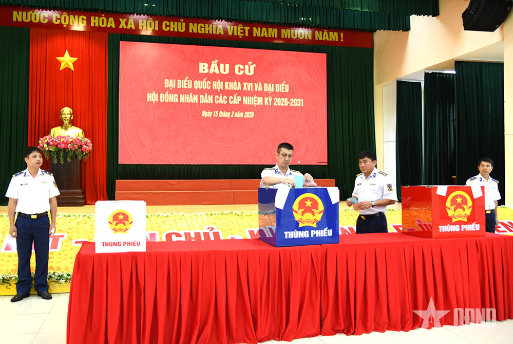 * Cũng trong sáng 15-3, tại khu vực bỏ phiếu số 32, phường Phước Thắng, TP Hồ Chí Minh, các cử tri là cán bộ, chiến sĩ Bộ tư lệnh Vùng Cảnh sát biển 3 và Đoàn đặc nhiệm phòng, chống tội phạm Ma túy số 3 (Bộ tư lệnh Cảnh sát biển Việt Nam) đã tham gia bầu cử đại biểu Quốc hội khóa XVI và đại biểu Hội đồng nhân dân các cấp nhiệm kỳ 2026-2031.