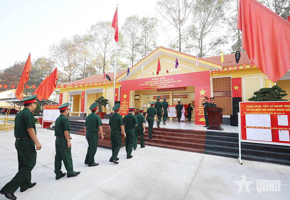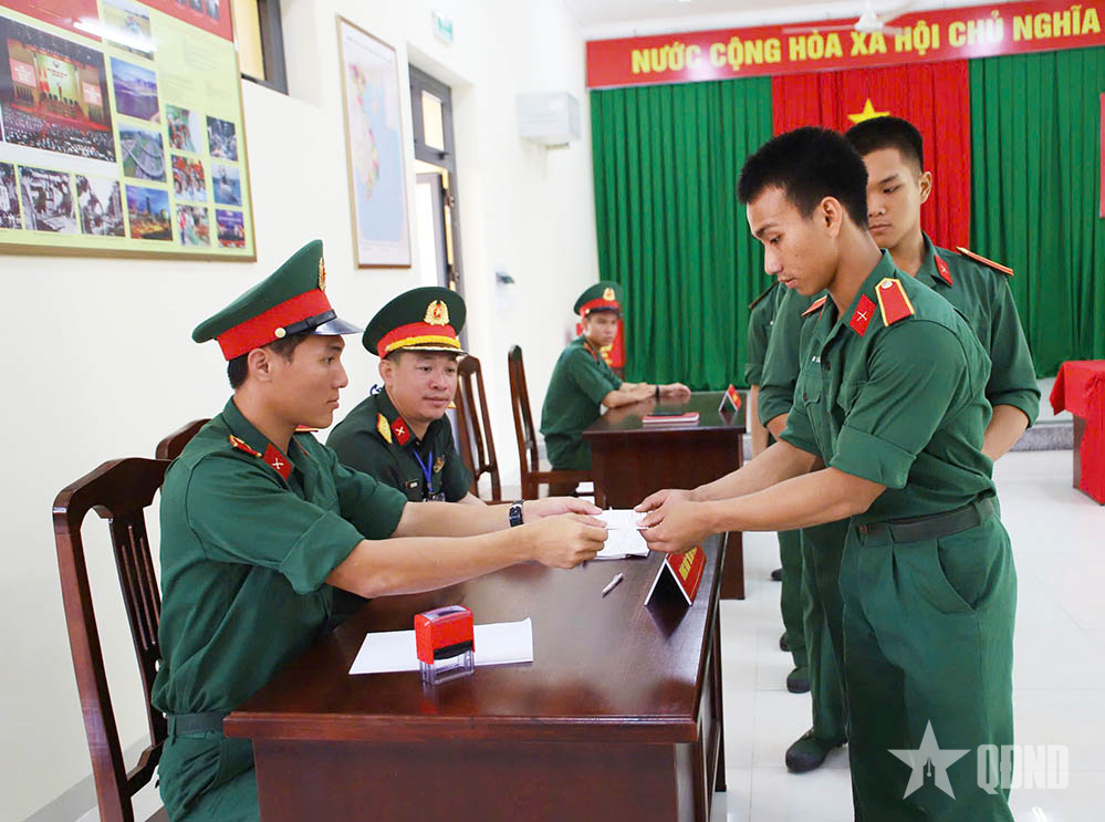 Các cử tri Trường Sĩ quan Lục quân 2 tham gia bầu cử.