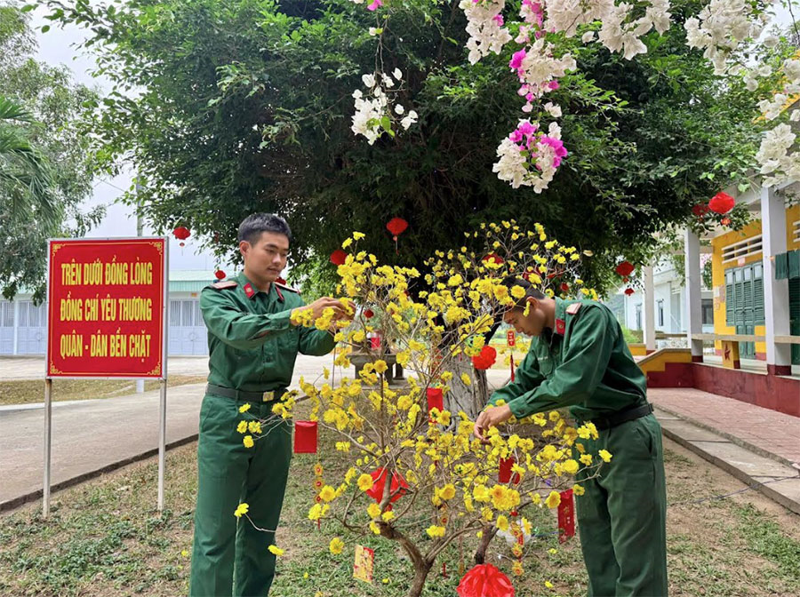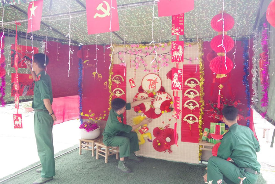 Đồng thời, tổ chức nhiều hoạt động vui chơi, giải trí ấm tình đồng chí, đồng đội như: Hội thi nấu bánh chưng xanh; đêm gala giao thừa; trang trí các gian hàng ngày Tết; chào cờ đầu xuân...