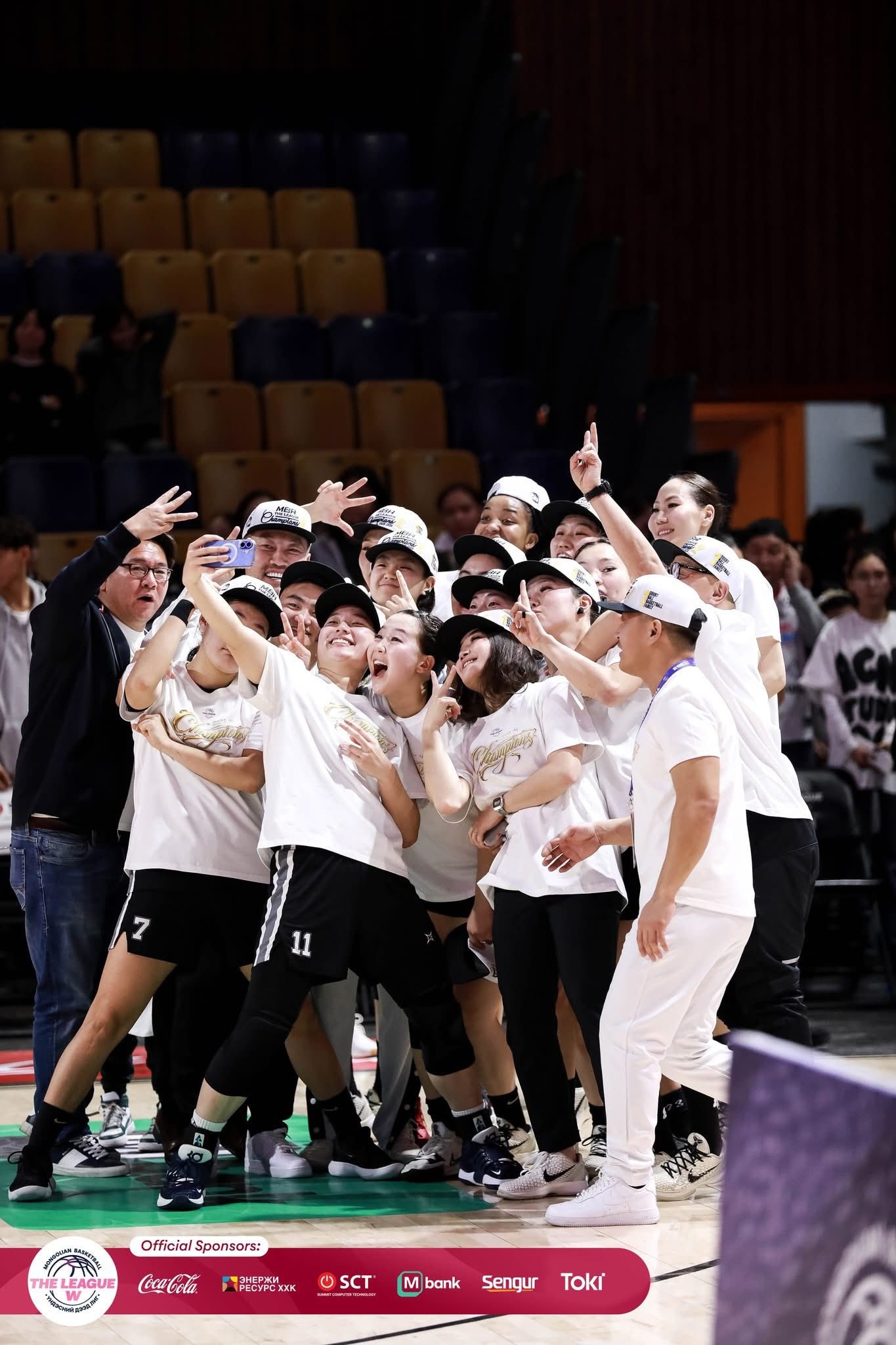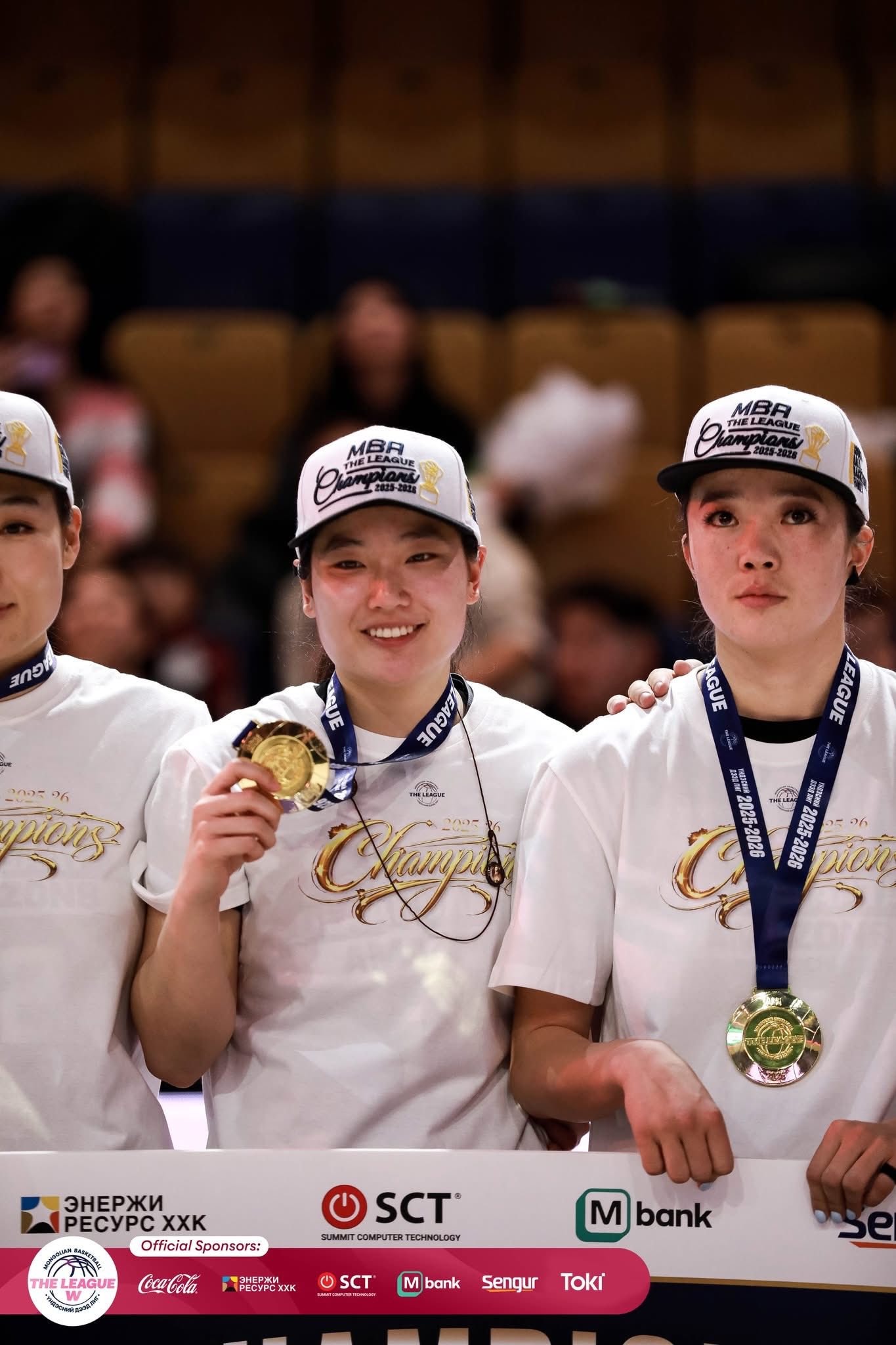 Trương Thảo My (giữa) giành chức vô địch với CLB bóng rổ Ulaanbaatar Amazons. Ảnh TTVN