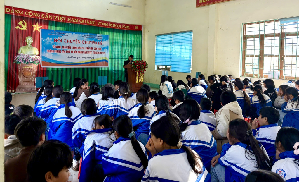 Nói chuyện chuyên đề về chính sách dân số và phòng, chống tảo hôn, hôn nhân cận huyết thống tại Trường THCS Lăng Hiếu.