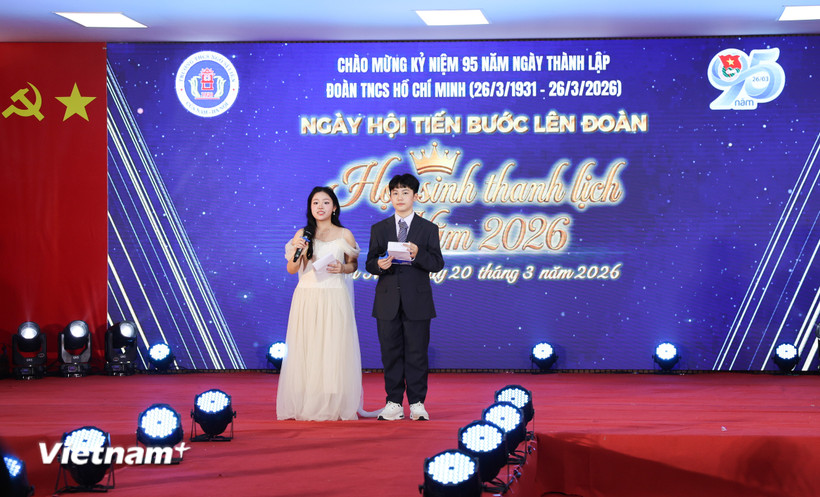 Học sinh tự dẫn chương trình trong cuộc thi Học sinh thanh lịch năm 2026 tại Trường Trung học Cơ sở Ngô Sĩ Liên. (Ảnh: Hoàng Long/VietnamPlus)