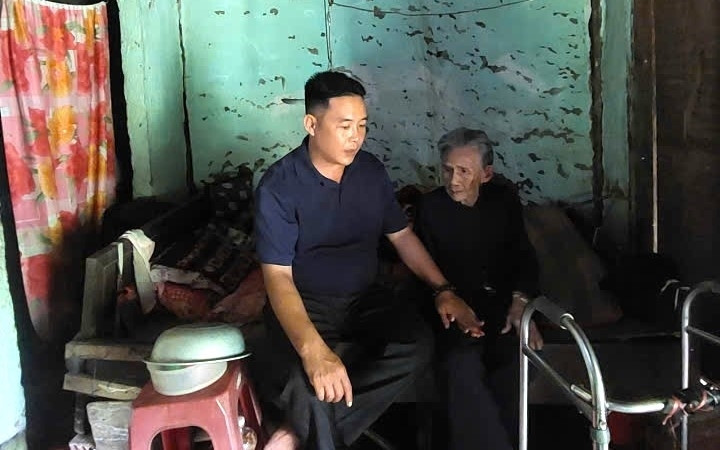 Anh Long thường đi cơ sở, động viên người già, người yếu thế trong địa phương.