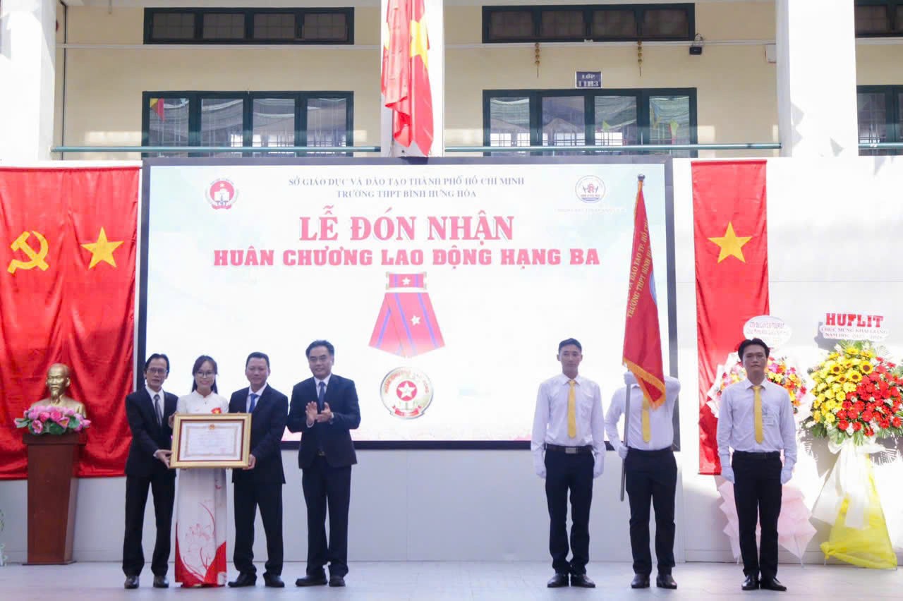 Ban lãnh đạo Trường THPT Bình Hưng Hòa đón nhận Huân chương Lao động hạng Ba - ghi nhận những đóng góp trong sự nghiệp giáo dục.