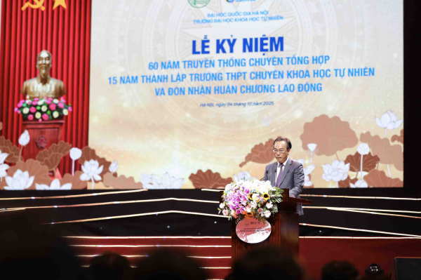 Tại lễ kỷ niệm, PGS.TS Hoàng Minh Sơn, Giám đốc Đại học Quốc gia Hà Nội cho biết, cách đây tròn 60 năm, 14/9/1965, giữa bom đạn chiến tranh, tại khu sơ tán ở Thái Nguyên, lớp chuyên Toán đặc biệt đầu tiên của Khối Chuyên Toán Tổng hợp với 38 học sinh đã chính thức được khai giảng.