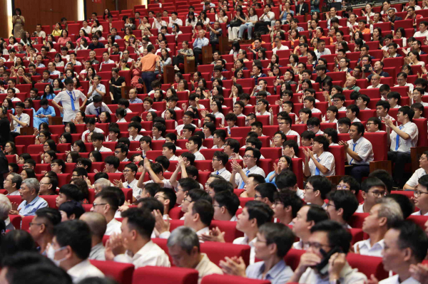Học sinh các thế hệ chuyên Tổng hợp và Chuyên KHTN về dự lễ kỷ niệm.