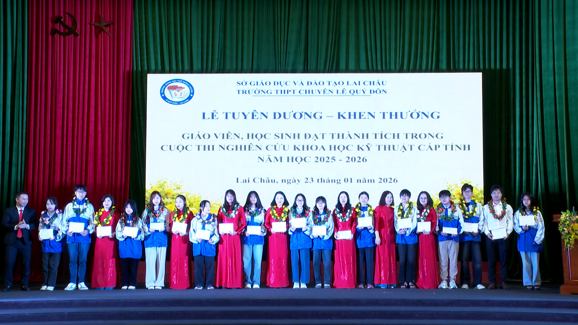 Đối với Cuộc thi nghiên cứu khoa học, kỹ thuật cấp tỉnh dành cho học sinh trung học năm học 2025–2026, Trường THPT Chuyên Lê Quý Đôn khen thưởng 7 dự án đạt giải và các giáo viên trực tiếp hướng dẫn. Trong đó, giải Nhất thuộc về dự án “Mô hình chữa cháy thông minh điều khiển qua wifi”, được đánh giá cao về tính sáng tạo và khả năng ứng dụng.