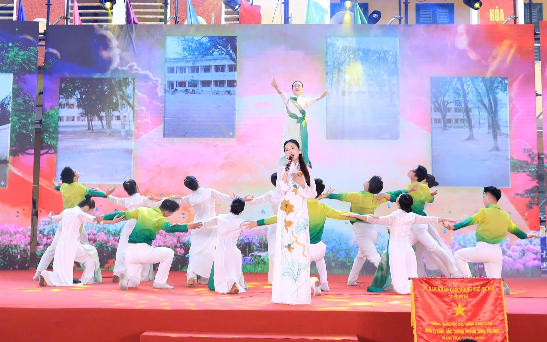 Nhân dịp này, UBND thành phố Hà Nội đã tặng Cờ đơn vị xuất sắc trong phong trào thi đua năm học 2024-2025 cho Trường THPT Đồng Quan.
