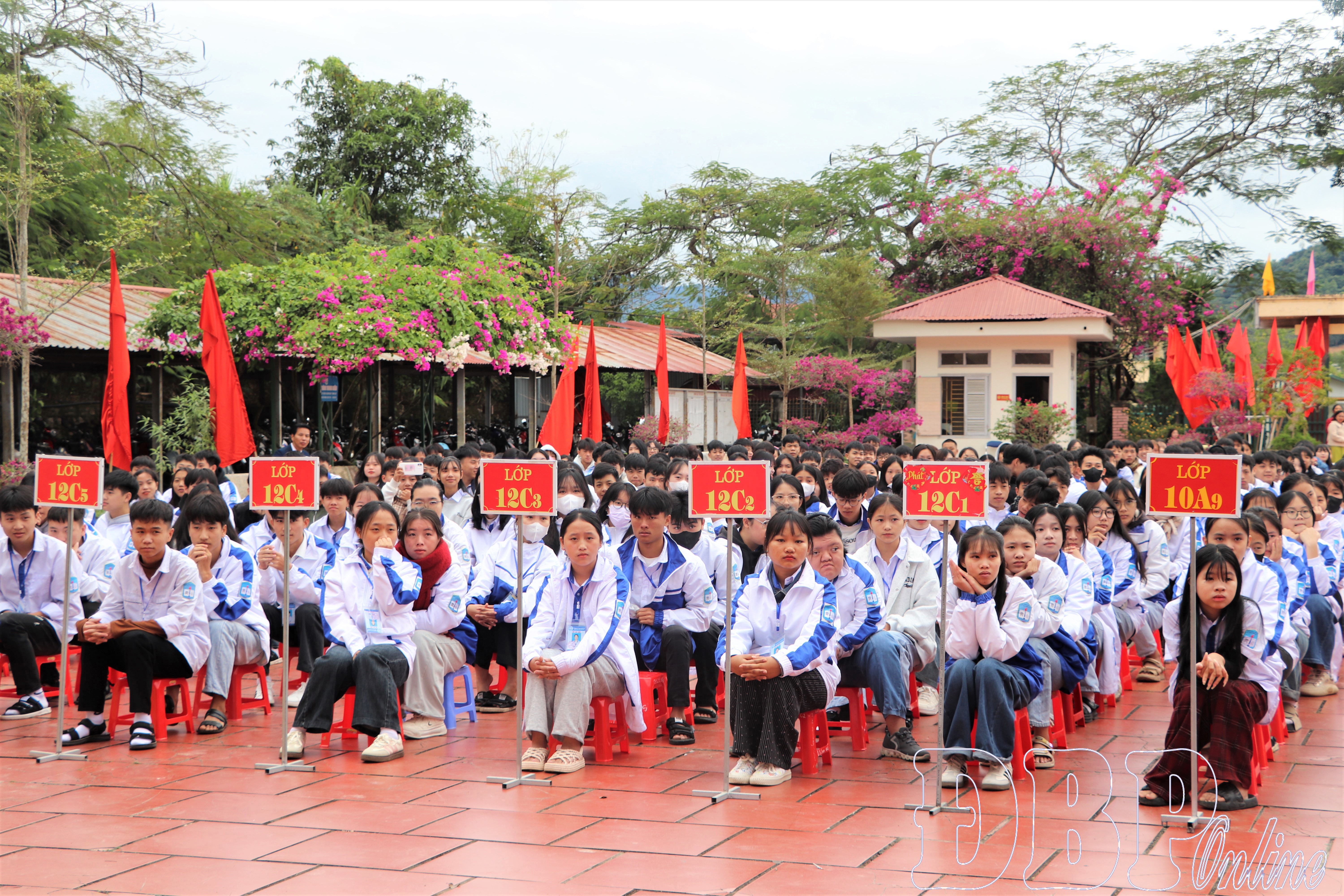 Học sinh Trường THPT Phan Đình Giót dự lễ kỷ niệm 25 năm ngày thành lập trường.