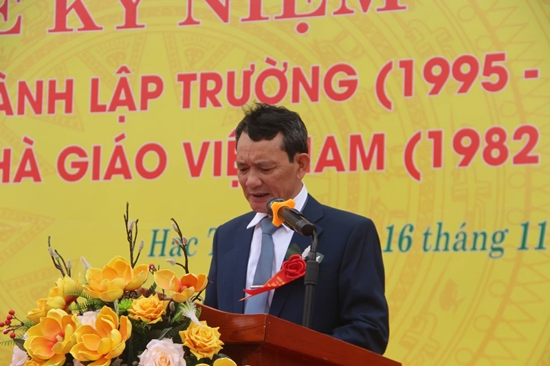 Thầy giáo Nguyễn Tài Quyển, Hiệu trưởng Trường THPT Tô Hiến Thành phát biểu tại lễ kỷ niệm.